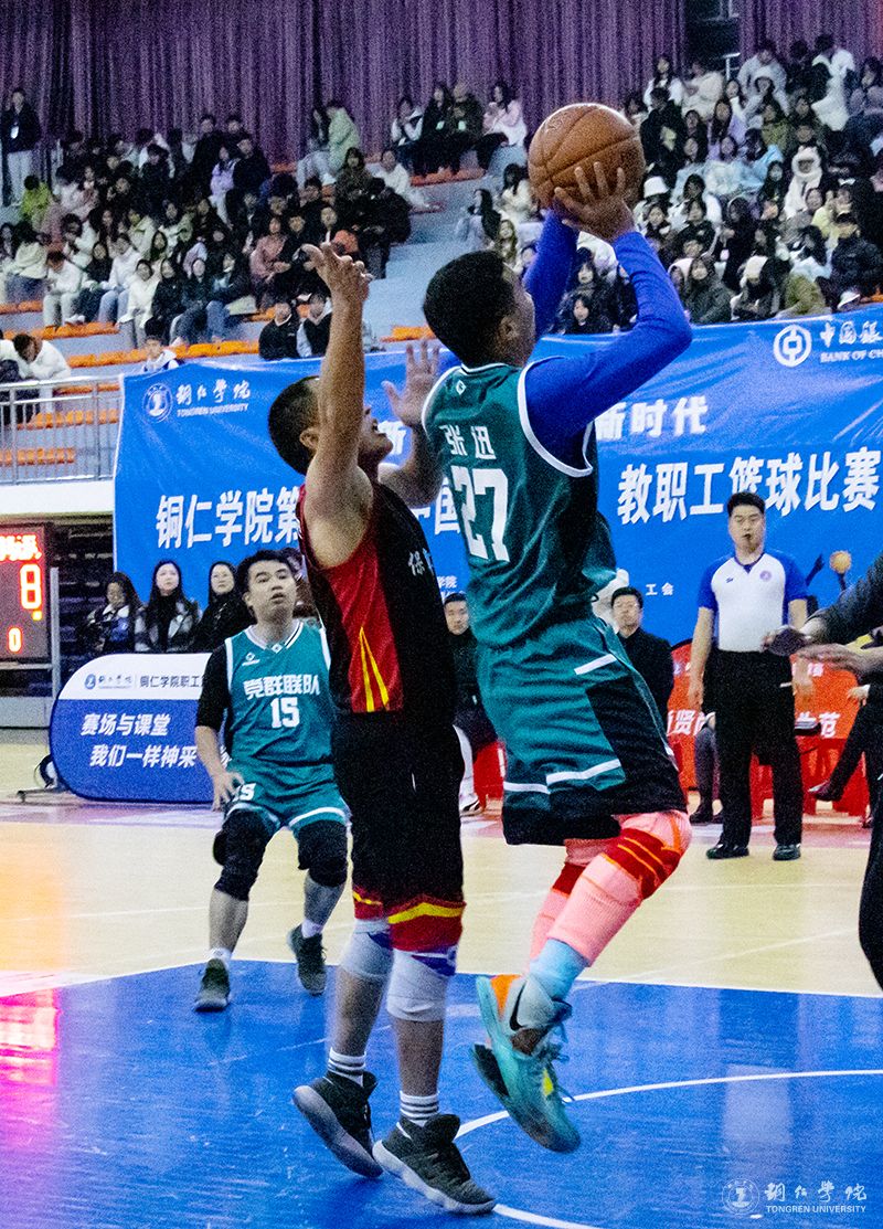 11月30日,世界杯官网第三届教职工篮球赛决赛暨闭幕式在体育馆举行。副校长石维,中国银行铜仁分行副行长冉详勇,党委委员、组织部部长梁正海、宣传部部长叶丹,人事处处长周曾艳,工会主席杨芬,财务处处长蒲天银出席闭幕式。团委副书记田自立主持闭幕式。各参赛队领队、教练员、运动员参加了闭幕式。学校师生通过到比赛现场或网络直播方式观看了决赛。