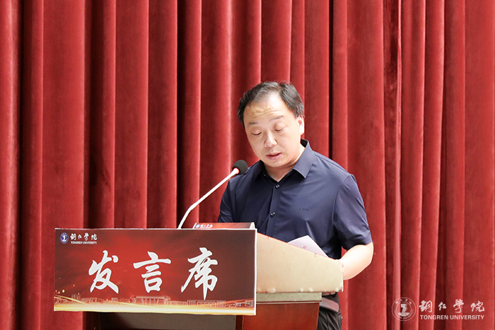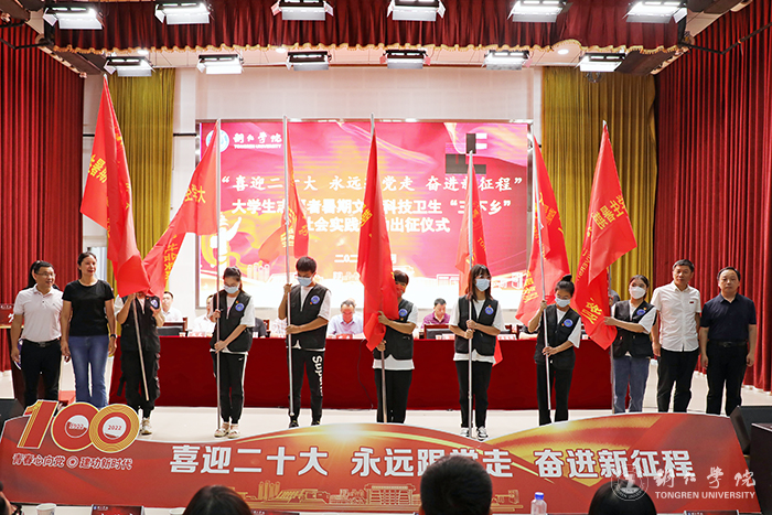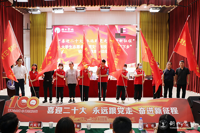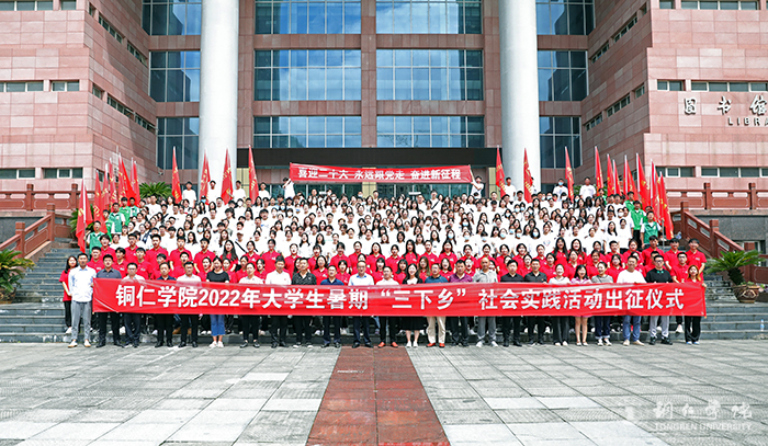 喜迎二十大,永远跟党走,奋进新征程 。为引导和帮助广大青年学生上好理论与实践相结合的“大思政课”,引导全校青年学生投身乡村振兴战略中去,勇做担当民族复兴大任的时代新人,7月4日上午,世界杯官网在梵净山人文生态馆举行2022年大学生志愿者暑期“三下乡”社会实践活动出征仪式。学校党委副书记代亮出席仪式并讲话。党委委员、组织部部长梁正海,党委宣传部、党委统战部、党委学工部、教务处、科研处、发规处、保卫处、后勤处负责人,以及各学院党委书记、分管学生工作领导、团总支书记、指导老师、大学生志愿者参加仪式。团委副书记田自立主持仪式。