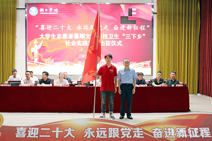 仪式上,代亮作了讲话。他指出,要将理论与实际相结合,以问题为导向,珍惜实践机会,走出校园,融入社会,将实践作为检验学习成果的唯一标准,在实践程中受教育、长才干,努力做到知行合一、以知促行、以行求知。他对暑期“三下乡”工作提了三点要求:一是要高度重视、统筹协调,成立安全工作领导小组,选派好具有一定经验的指导老师,做好老师和学生的安全工作培训,做好实践内容、实践地点的安全性研判把关,统筹推进好该项工作;二是要压实责任、做好预防,监督和管理好“三下乡”社会实践活动,开展好队伍安全监督、提示、预防、应急处理等工作;三是要以人为本、确保安全,坚持以人为本思想,周密部署“三下乡”安全工作预判及预案,杜绝麻痹大意思想,牢牢守好师生生命安全底线。