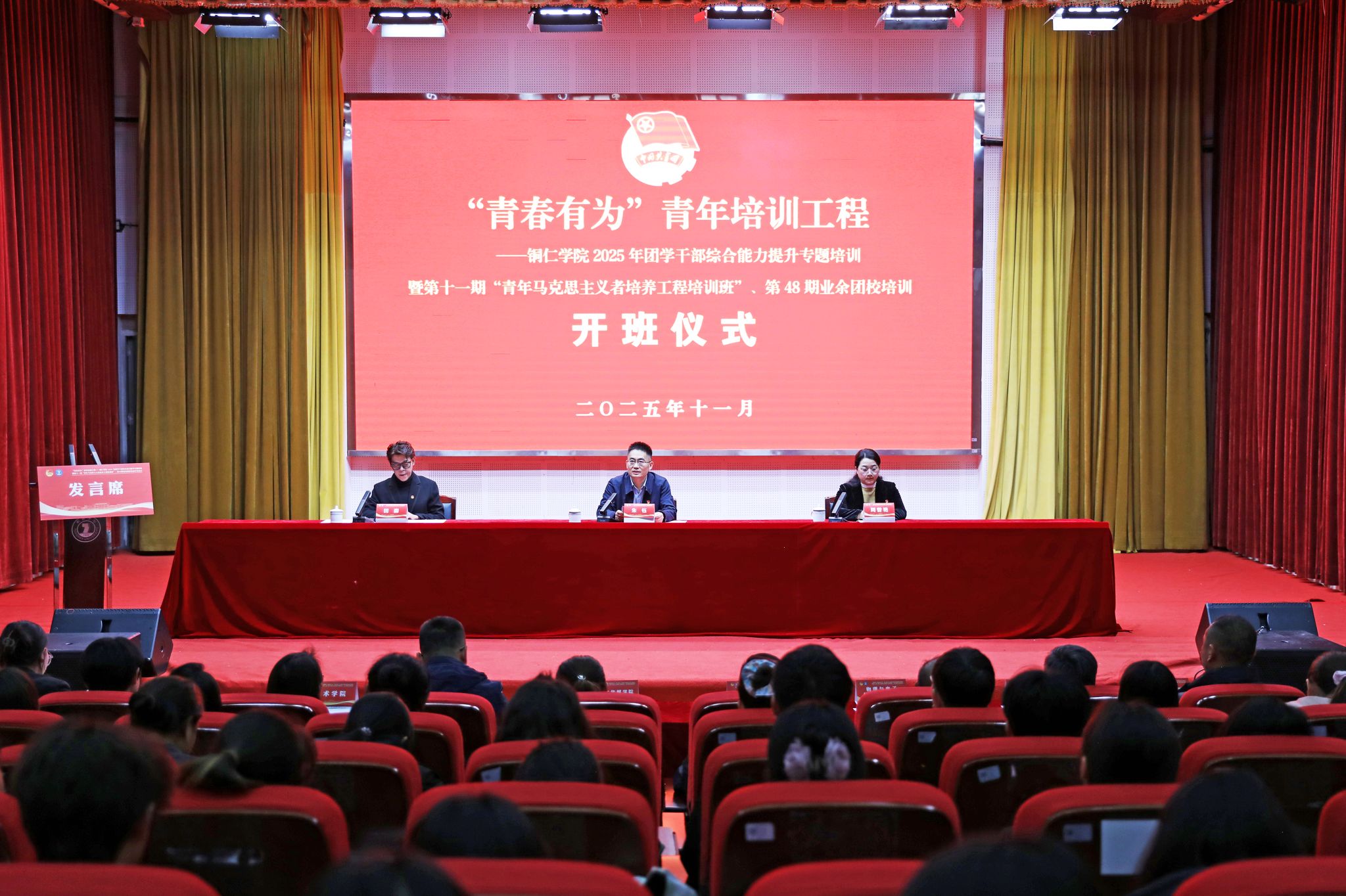 11月10日,世界杯官网在梵净山人文生态馆举行“青春有为”青年培训工程——2025年团学干部综合能力提升专题培训暨第十一期“青年马克思主义者培养工程”、第48期业余团校开班仪式。校党委副书记朱钰,党委常委、党委组织部部长周曾艳出席仪式。校团委副书记田淼主持开班仪式。各学院分管学生工作负责同志、团委负责人及全体参训学员近400人参加活动。