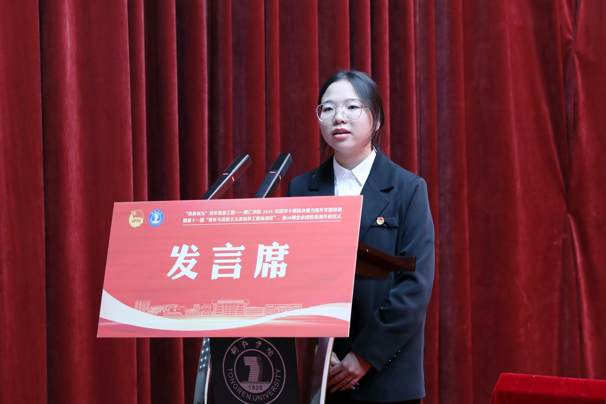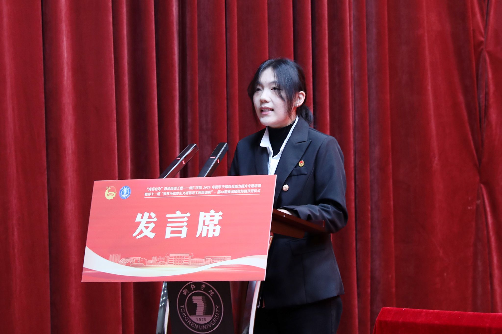 仪式上,田淼宣读了本次培训方案,明确了培训目标、课程安排与纪律要求。上一届优秀学员代表、农林工程与规划学院2023级园林专业汤红芳同学分享了参加培训的成长收获,鼓励新学员珍惜机会、积极进取。新学员代表、教育学院2024级学前教育专业杨梦月同学发言,表达了珍惜学习机会、锤炼自身能力、践行青春誓言的信心与决心。