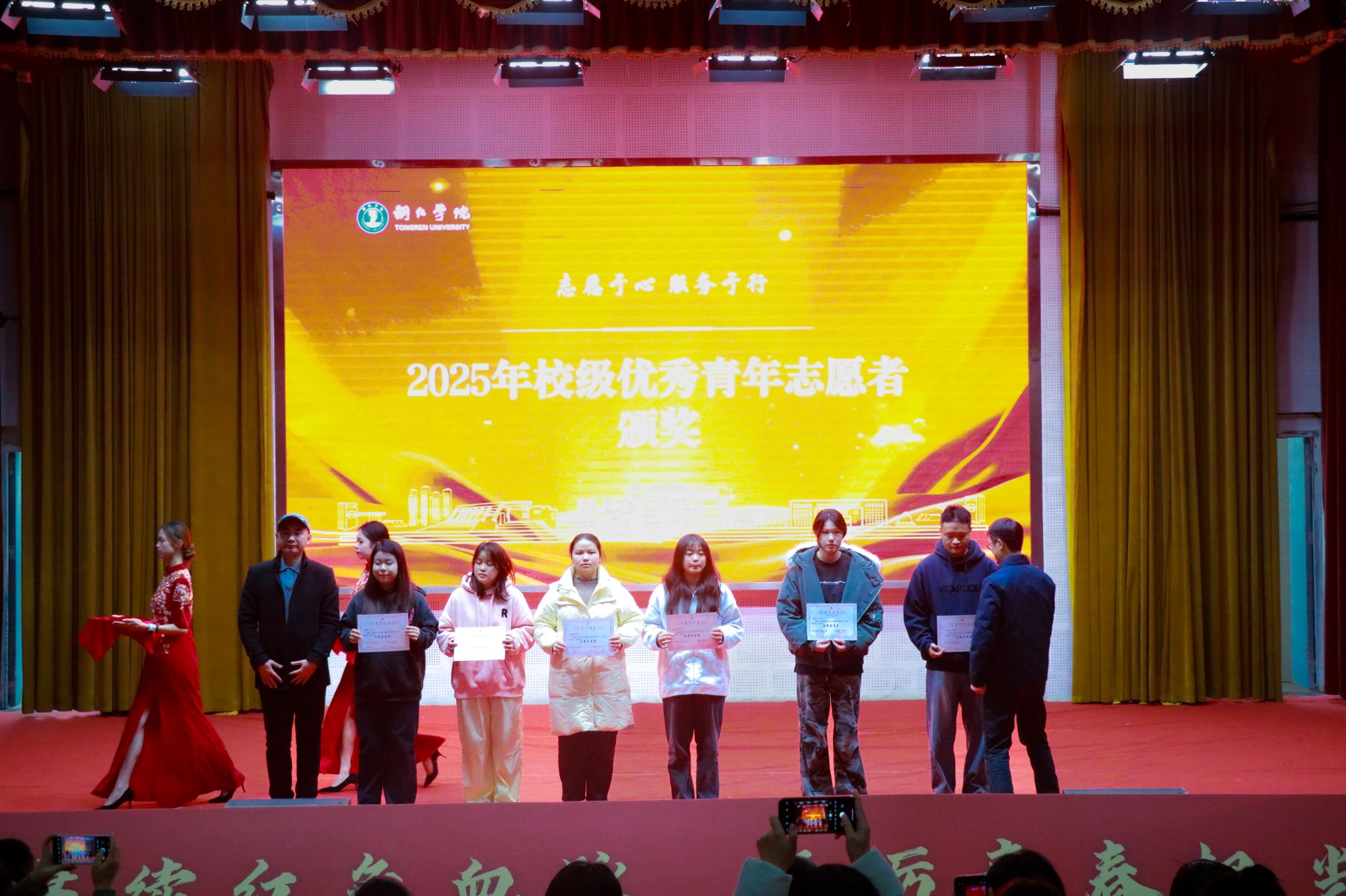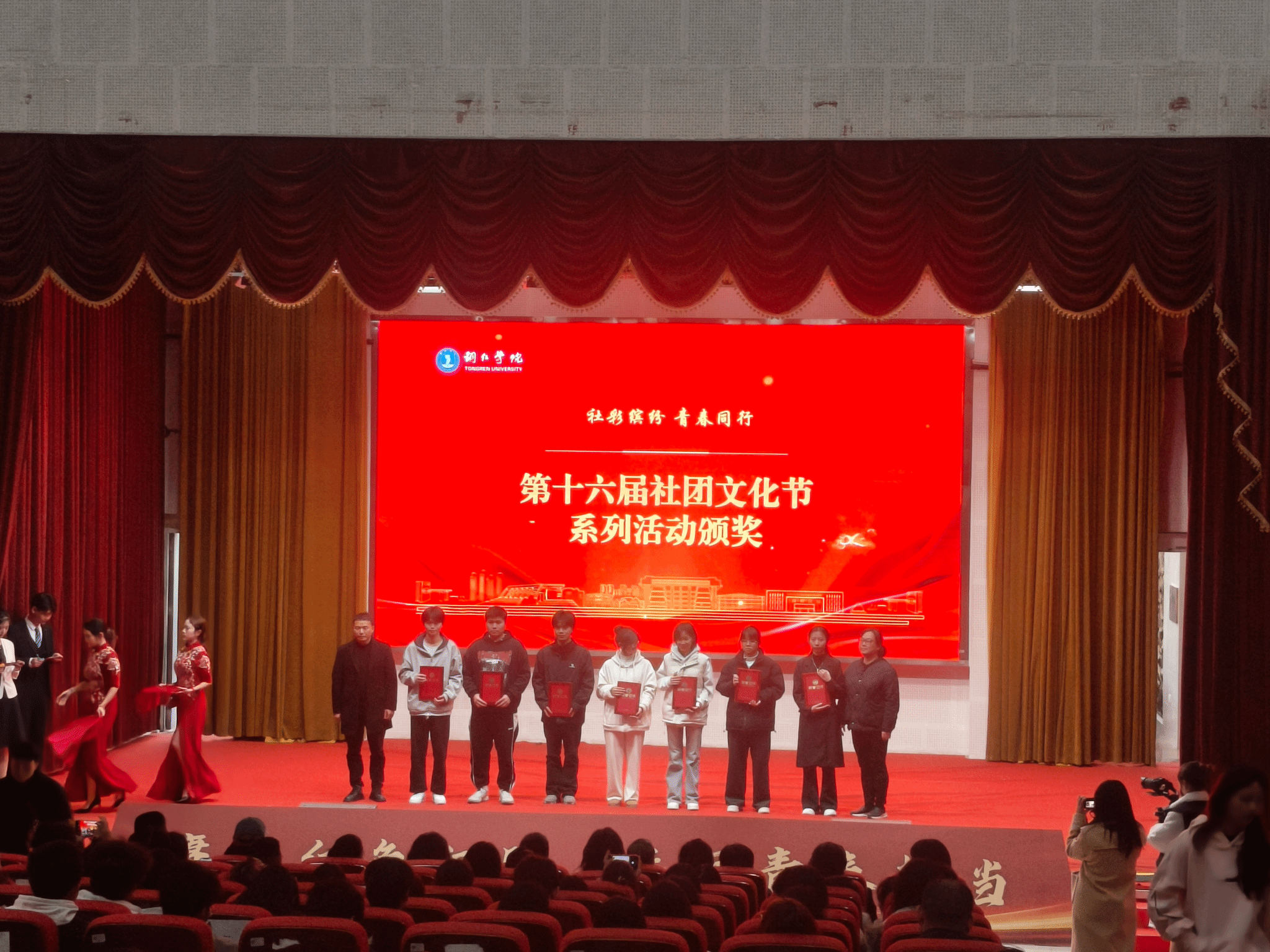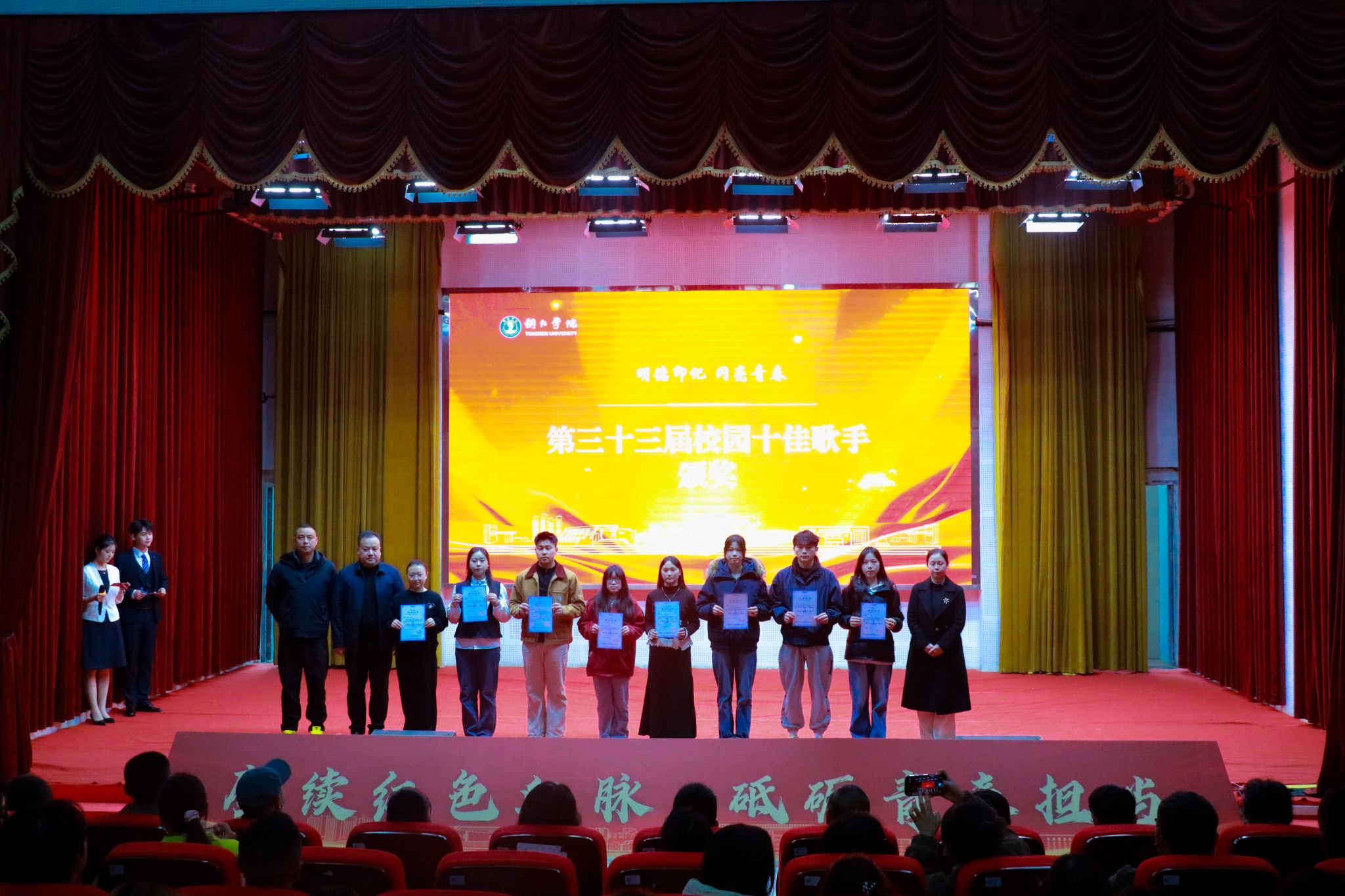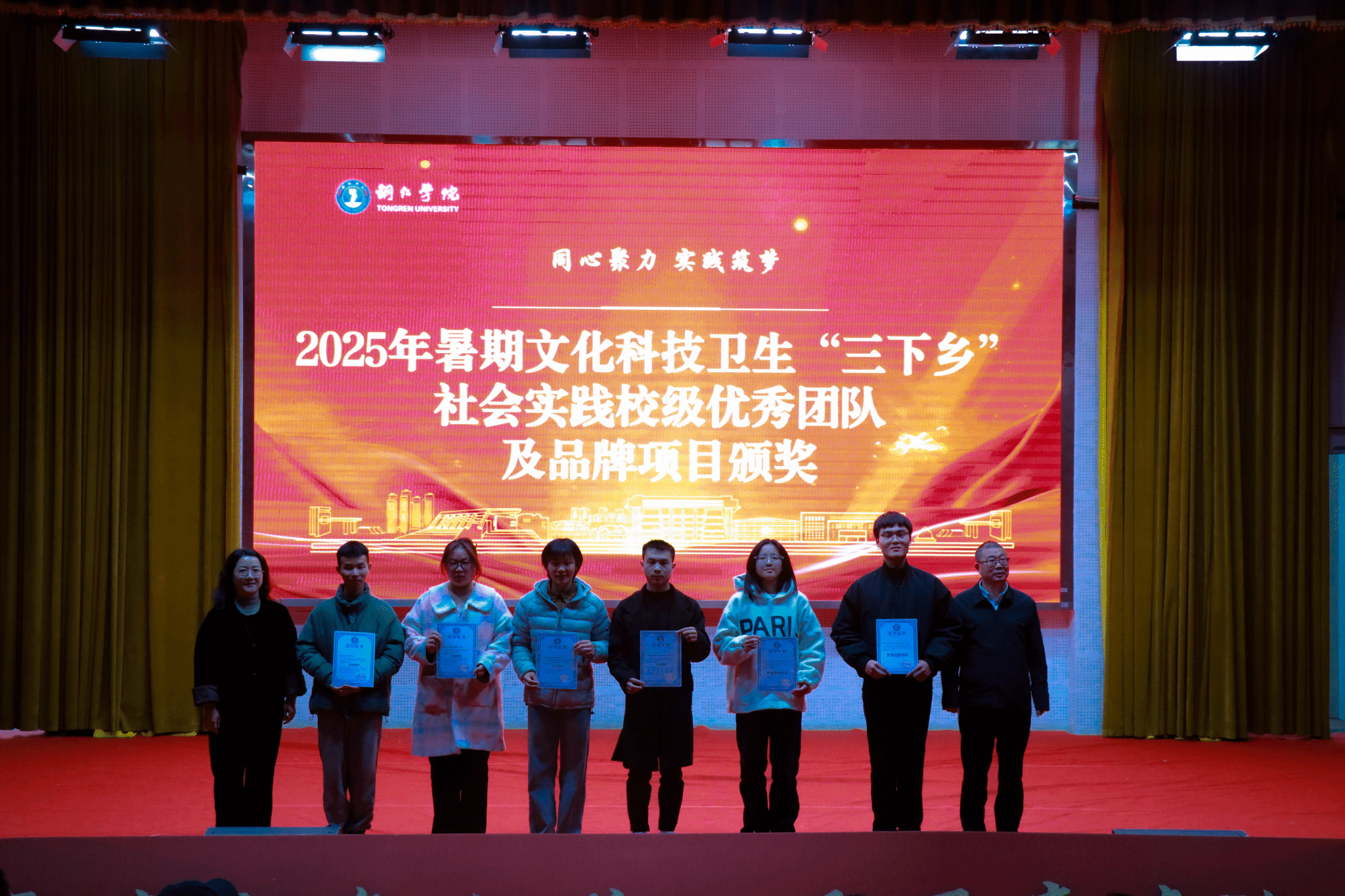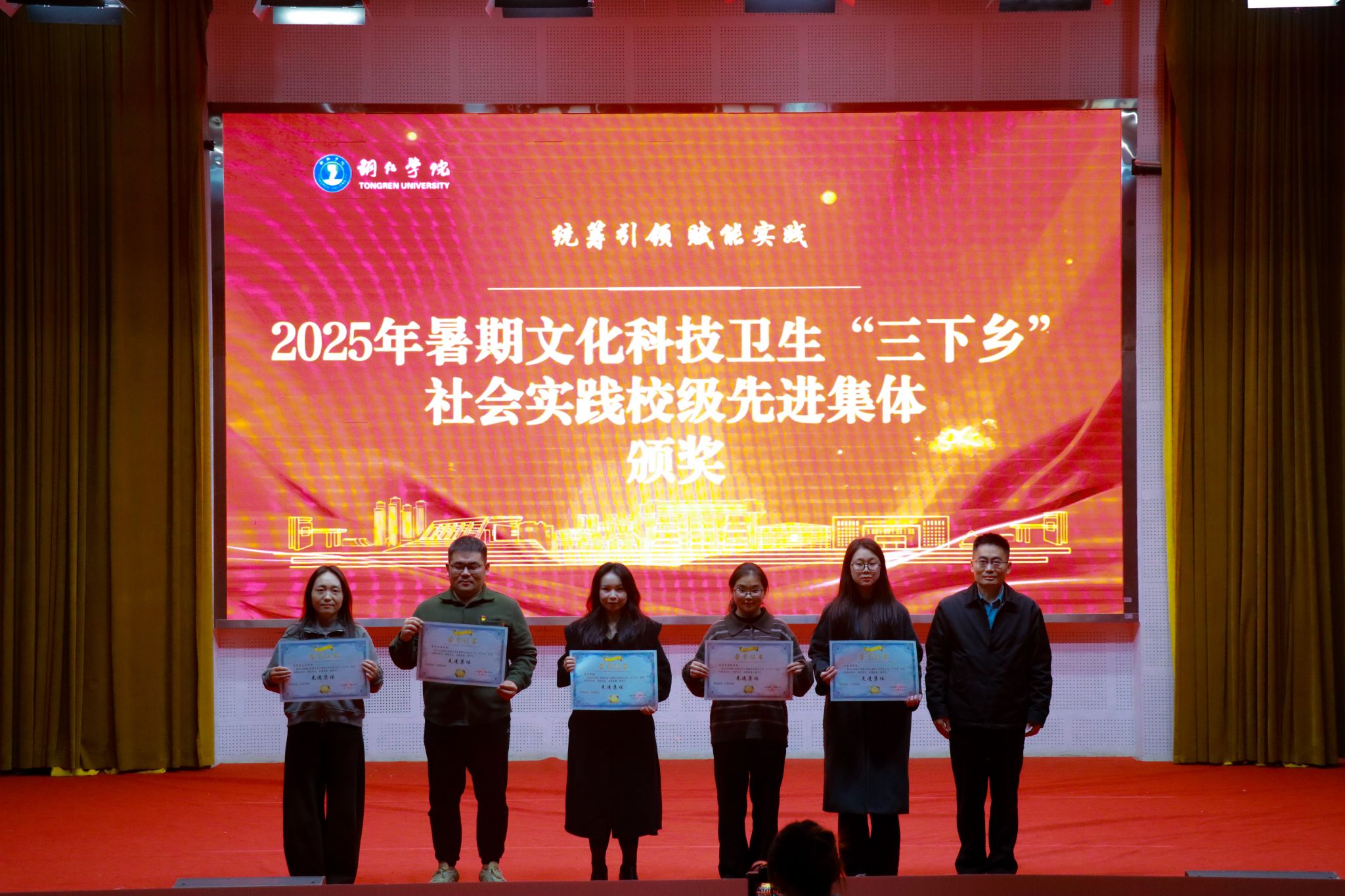 活动还举行了颁奖仪式,对在社团文化节、校园十佳歌手大赛、志愿服务、暑期“三下乡”社会实践等活动中表现优异的集体和个人进行表彰。文学与传媒学院、大数据学院、艺术学院、马克思主义学院、经济管理学院荣获2025年暑期“三下乡”社会实践校级优秀集体称号。