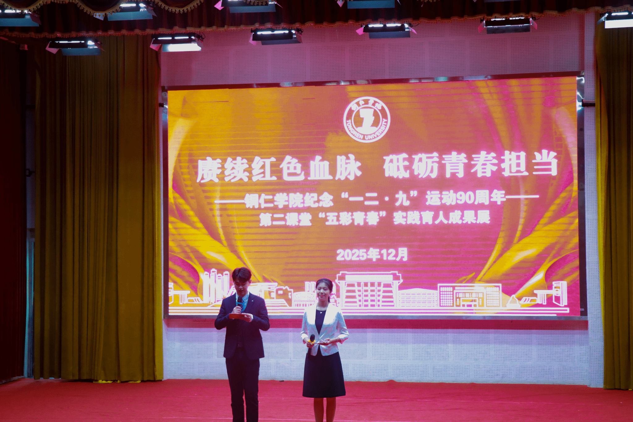 此次活动既是对“一二·九”运动90周年的深情纪念,也是对学校第二课堂实践育人成果的集中展示,充分体现了铜院学子以青春之名传承爱国精神、以实践之笔书写时代答卷的坚定信念与昂扬风貌。学校将继续深化“五彩青春”实践育人内涵,为培养更多德智体美劳全面发展的社会主义建设者和接班人,为推动高质量发展,为强国建设、民族复兴的宏伟事业努力奋斗。