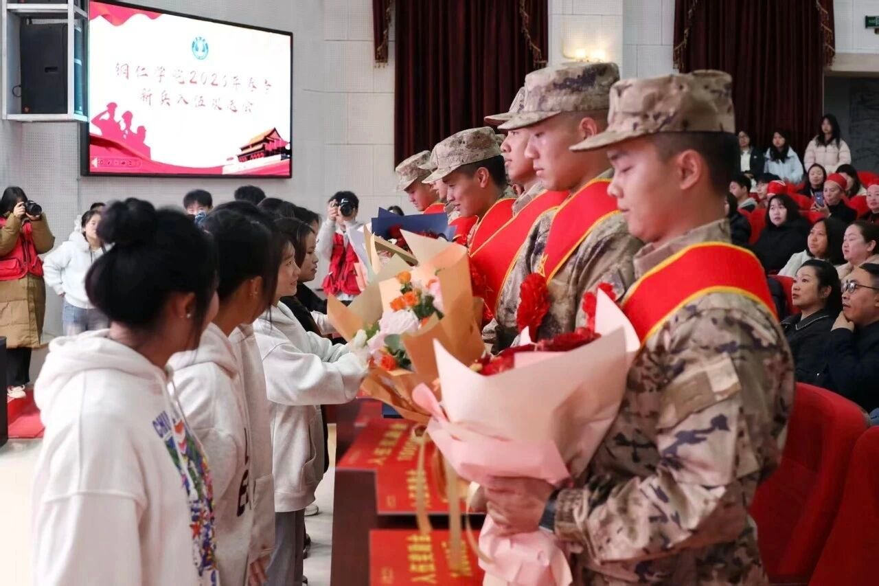 潘学军宣读入伍名单,世界杯官网2026年春季入伍学生共33人。校领导给入伍新兵代表佩戴大红花、赠送校长签名纪念品;学生代表为入伍新兵献花,向大家表达了春日出征、载誉凯旋、捷报频传的美好期许。