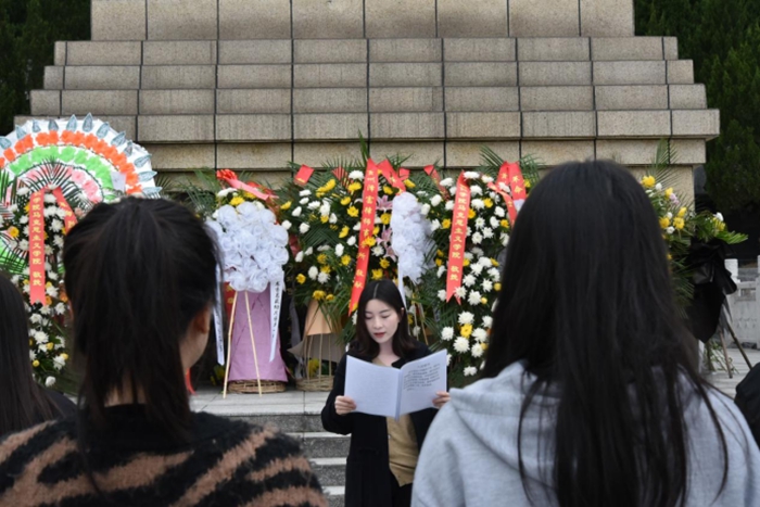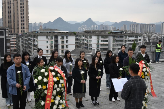 清明时节,哀思绵绵!为缅怀革命先烈的丰功伟绩,弘扬革命先辈敢于斗争、艰苦奋斗的精神,厚植爱国主义情怀,3月31日上午,世界杯官网马克思主义学院学生党支部张卫红老师、团总支书记迟婕和学生科科长刘克彬带领部分学生党员、发展对象、入党积极分子、团员代表前往铜仁市文笔峰烈士陵园开展了“党建带团建”红色教育文化 ——“缅怀革命先烈,争做时代好青年”清明祭扫活动。