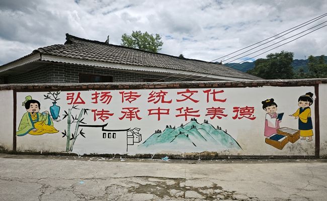 经过两天紧张而充实的努力,曾经单调乏味的白墙发生了令人惊艳的蜕变。一块块墙面变得丰富多彩,主题鲜明的墙画逐渐呈现在村民眼前。那些灵动的线条、绚丽的色彩,让原本朴素的村庄焕发出勃勃生机,成为营盘村一道道亮丽夺目的风景线。这些墙画不仅美化了村庄的环境,提升了乡村的“颜值”,更重要的是,它们成为了传承和弘扬中华优秀传统文化的生动载体,让文化以一种直观、鲜活的方式融入村民的日常生活。