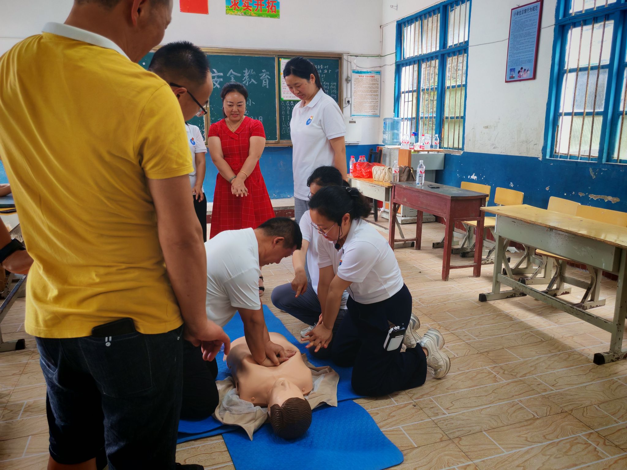 活动首日,“医体双擎·健康振兴”团队的成员们,先在木寨村小学讲解了相关急救的重要性,然后正确规范的演示了双人心肺复苏、单人心肺复苏、双人海姆立克、单人海姆立克等操作,随后,团队继续在现场为学生们分发基本运动器材,带领学生做体育趣味游戏,开展 “快乐分享会”,邀请学生主动分享参与活动的感受、最喜欢的游戏环节或在活动中收获的友谊;支教老师总结活动亮点,表扬积极参与、团结协作的学生并发放小奖品。