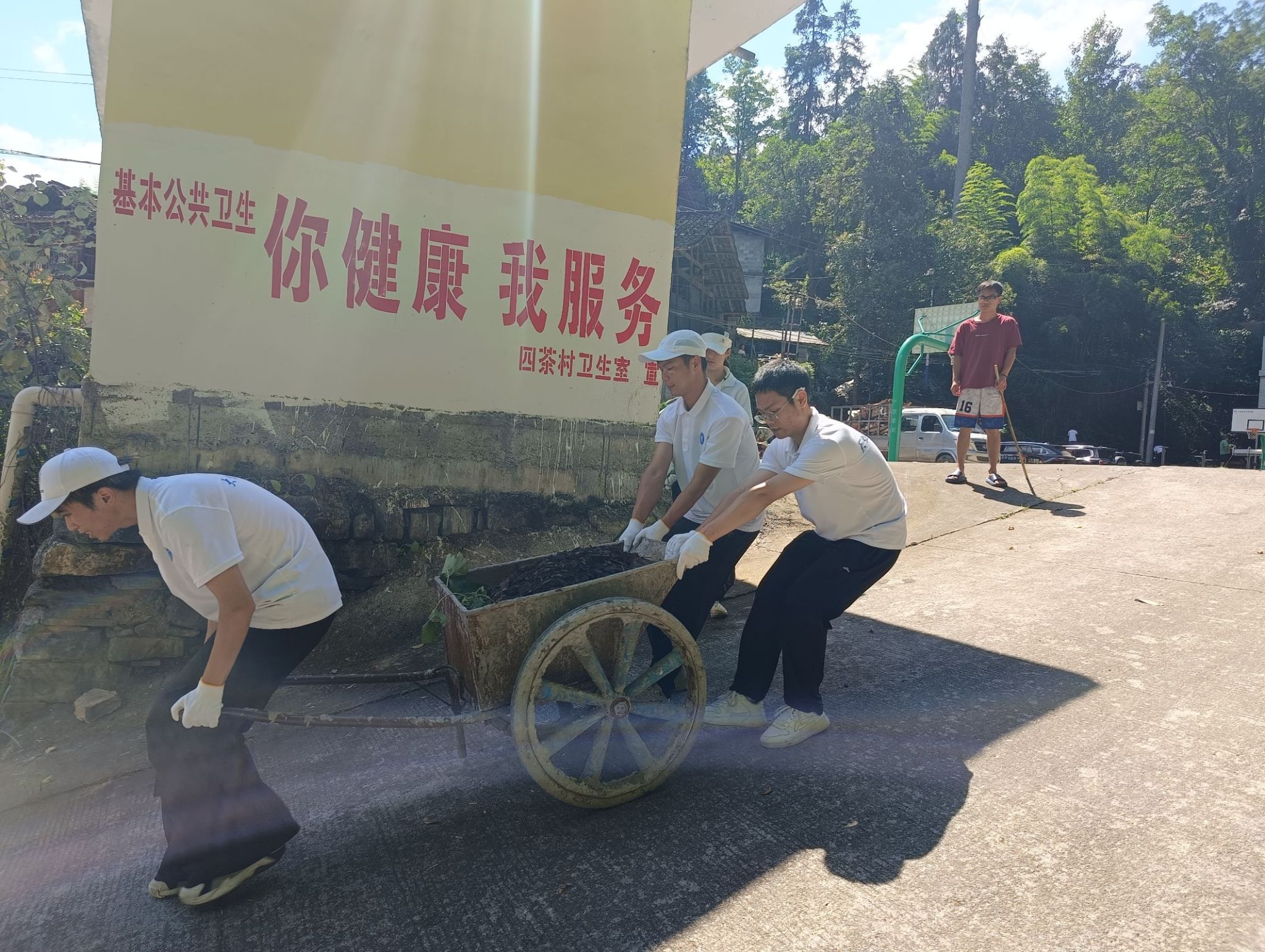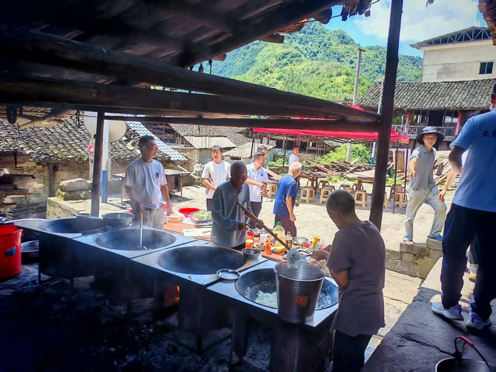 活动期间,师生们充分发挥医学与体育健康专业优势,通过健康义诊、急救培训等方式,为村民带来了实实在在的健康服务,让村民在家门口就能享受到专业医疗资源;在环境整治活动中,大家手持劳动工具,积极清理乡村环境,助力乡村面貌焕新;此外,师生们还特别关爱留守儿童,给他们送去温暖与关怀。驻村第一书记对本次活动给予高度评价,认为活动不仅让高校学子在实践中增长了才干,还实现了校地共赢,充分展现了高校服务社会的责任担当。通过 “送健康、送知识、送文明”,为乡村发展注入了新活力,得到了当地群众的一致好评。此次 “三下乡” 活动,为乡村振兴注入了青春动能,也为高校与乡村的合作交流搭建了良好平台。活动最后四茶园村村民自发与团队师生共同置办了一顿丰盛的午餐。