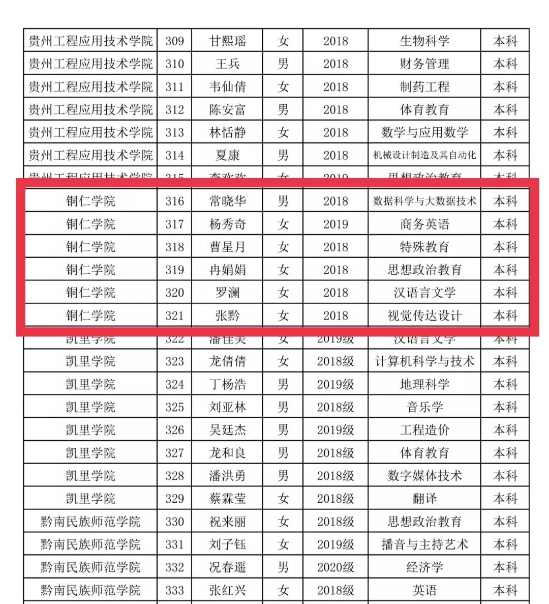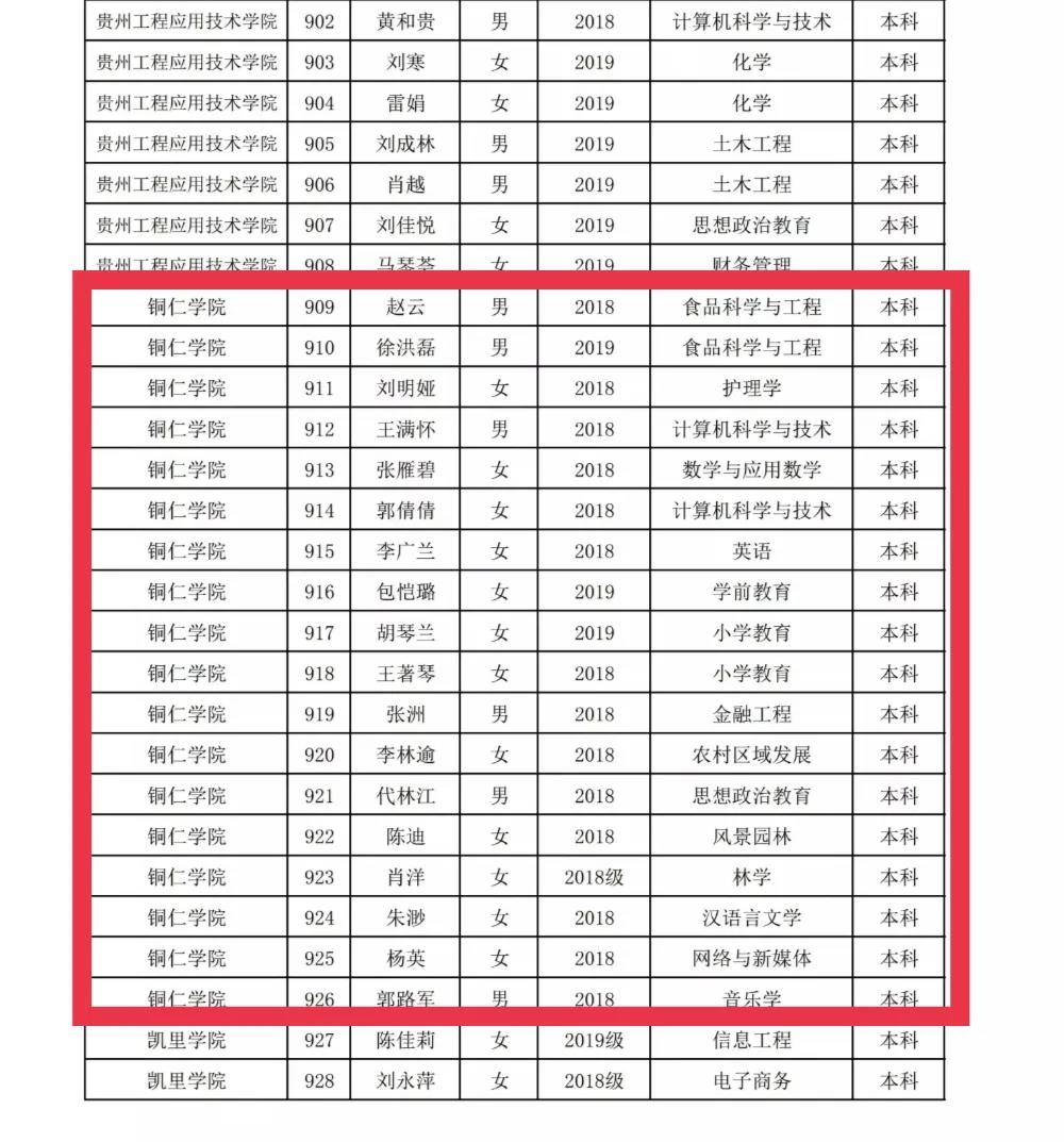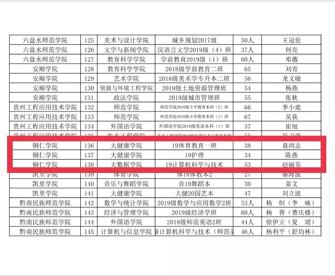 2021年贵州省普通高等学校先进班集体名单 (部分名单) 祝贺!
