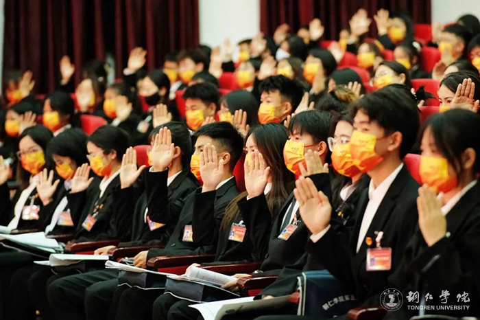 学校团委副书记张朝飞在致辞中对莅临本次大会的领导、辛勤工作的同学和积极参与的学生代表表示感谢,对学生会的工作给予充分肯定,并希望当选的新一届委员会要坚持以习近平新时代中国特色社会主义思想为指引,继续秉承学校“明德 致用”校训,围绕“引导、代表、服务、发展”四大职能,以强烈的责任心和使命感,热心服务全体同学,团结带领全校广大青年学子积极参与学校建设,为学校全面建设成为特色鲜明的高水平教学研究服务型大学贡献自己的青春力量。