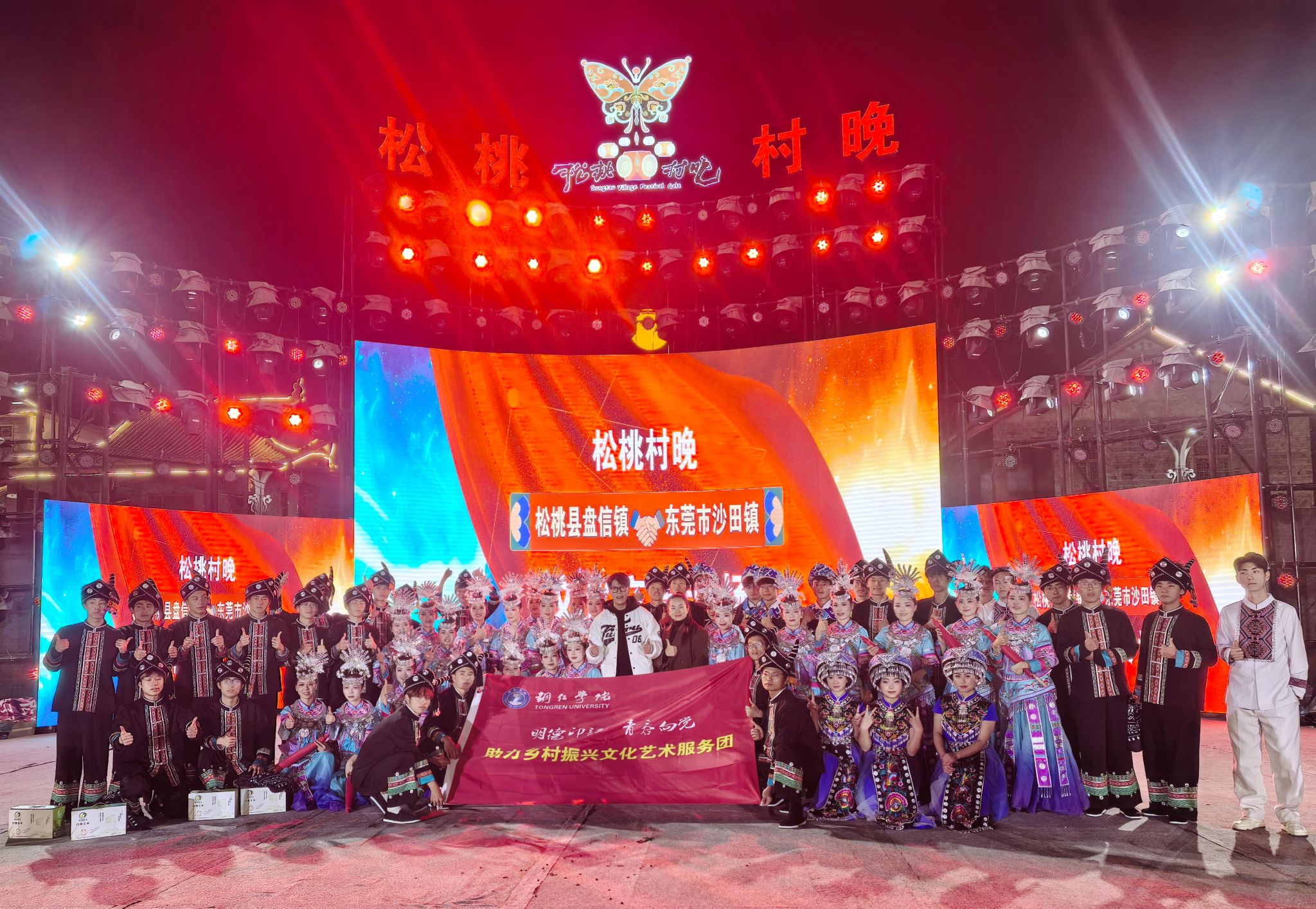 近日,世界杯官网“明德印记·青春向党”助力乡村振兴文化艺术服务团一行67人,在校团委副书记田淼、教育学院杨松慧老师的带领下,再次走进“松桃村晚”舞台,与来自广东东莞沙田的文化团队联袂献艺,开展了一场别开生面的文化交流活动,用青春的创意与才华,为乡村振兴注入文化动能。