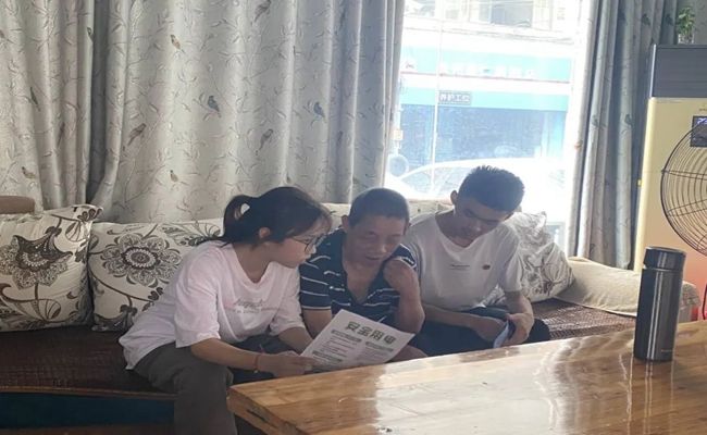 志愿者向老爷爷普及安全知识