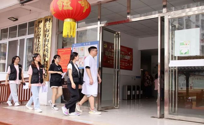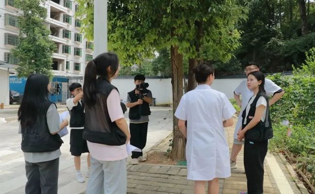 为深入学习习近平新时代中国特色社会主义思想,深入贯彻党的二十大精神,7月10日,在校团委副书记张朝飞的带领下,由校团委青媒工作室14名青年大学生组成的“向日葵”实践队,深入铜仁市康复医院开展二十大精神宣讲、拍摄全家福或个人照、反诈骗宣传、禁毒防艾宣传等系列社会实践活动。