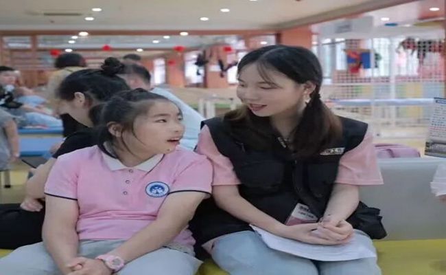 7月10日,在康复医院工作人员的带领下,实践队分为两个小组,一组深入病房为患者及其家属拍个人照或全家福,另外一组深入各康复区作党的二十大精神宣讲、反诈骗、禁毒防艾等宣传。公益拍照这一活动迅速在医院引起热烈反响,“妹,可以给我的孙子拍张照吗?”“小同学,我孩子最近刚刚学会走路,我想给她拍张照片。”实践过程中,队员们分工有序、配合默契。“小伙子,你刚刚讲的这个是什么?”“奶奶您可要多注意,不法分子经常对老年人下手。”部分实践队员现场为老人们讲解如何防范电信诈骗等知识,避免诈骗陷阱。同时,实践队深入儿童康复治疗区,和小朋友玩游戏、做康复训练、教他们唱歌等,实践队队员们用镜头捕捉笑脸,用心聆听故事。