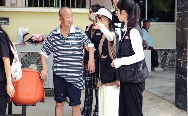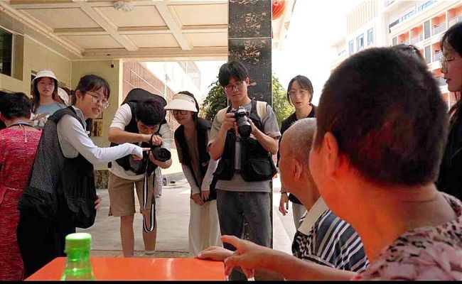 7月11日,实践队一行早早来到川硐敬老院,与老人话家常,为老人揉肩按摩,关注他们的身体健康。在了解敬老院老人的基本情况后,实践队成员开始架相机、摆相框、开电脑,为拍照做准备。拍摄过程中,实践队成员边沟通边引导,“爷爷,看镜头,一、二、三,茄子!”“奶奶,放轻松,笑一笑!”在进行拍摄的同时,实践队成员也耐心为老人们讲解反诈、禁毒常识,利用发生在身边的真实案例,以通俗易懂的方式普及常见的网络诈骗的形式、毒品的危害以及防范措施。