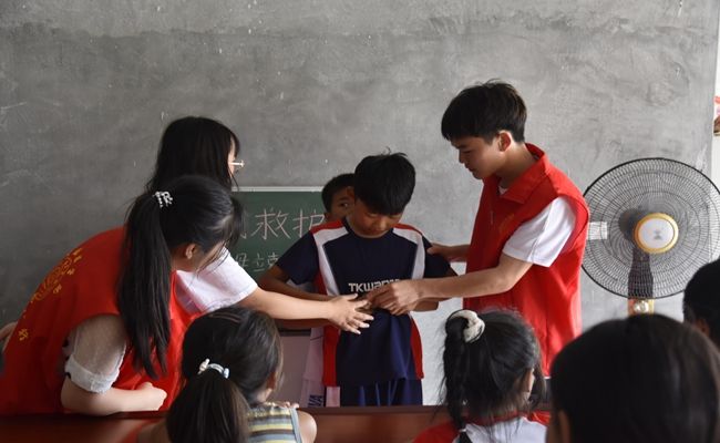 活动开展过程中,助教团队成员巧妙地将安全教育内容渗透到各个环节,针对身边最紧迫的安全问题,特别设计了防溺水教育、用电安全教育、消防安全教育等安全教育课程以及海姆利克急救法、地震逃生演习等自我救护课程。通过这一系列安全教育课程,助教团队让孩子们树立起了正确的安全意识,强化了他们的消防安全观念,提升了自我防护能力,有效地预防了溺水与火灾事故的发生。