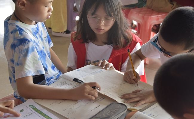活动开展期间,每日上午,助教成员主要围绕语文、数学、英语展开辅导,以一对多的形式督促孩子们完成相应的学业内容,引导孩子们在暑期作业练习中发现自身不足,从而将所学知识与实际应用紧密相连。在辅导过程中,助教团队细致地帮助孩子们解决学习中的难题,挖掘潜在的知识盲区,有效地提升了孩子们的思维能力和解决问题的能力。