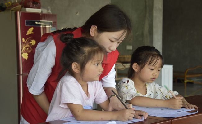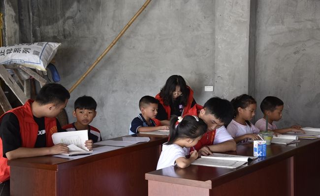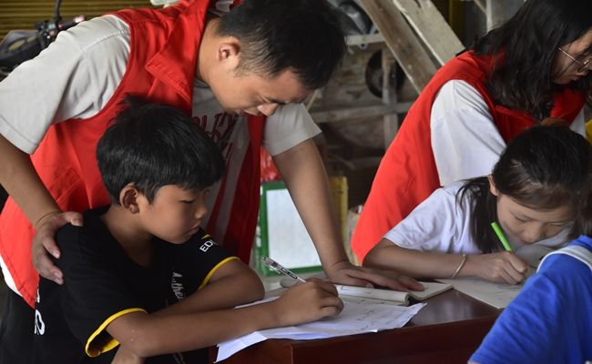 (助教成员给小朋友们进行学业辅导)