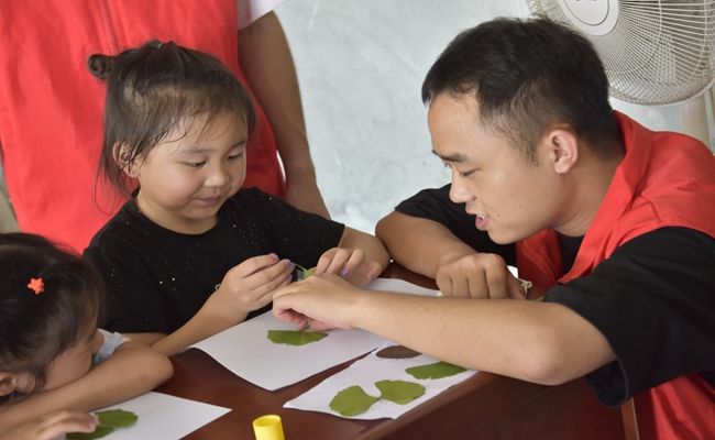 团队成员在教学过程中秉承教学相长之理念,旨在让助教团队注重发展素质教育,与孩子们在互动中共同成长。午后活动环节,助教团队细心筹备了瓶子吹气球、气球静电、电流小实验等科学实验,吹气小黄鸭、叠杯子等手工活动,树叶贴画、甲骨文贴画、天马行空等绘画活动,并制定了周密的应对策略,确保活动顺利进行。这些活动项目通过“先学后教”的方式,不仅培养了孩子们的独立思考能力、团队协作精神,也在娱乐过程中,提升了孩子们的竞技精神,更好地促进了共同进步。