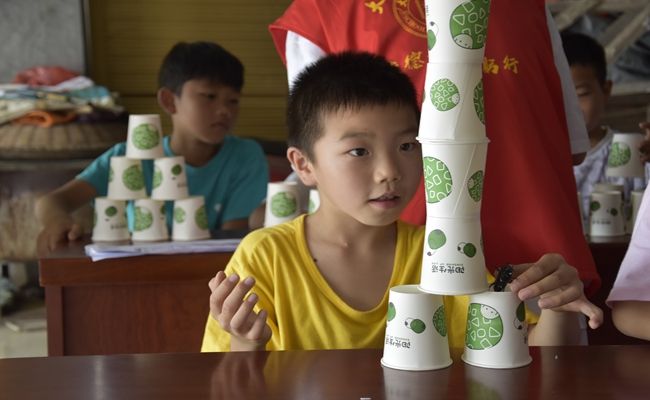 (叠杯子活动进行中)