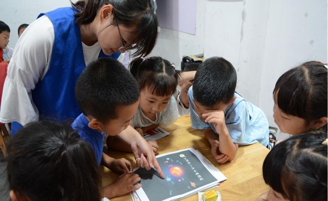 (志愿者教幼儿园小朋友认识太阳系中的行星)