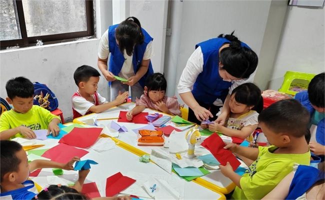 (志愿者协助小朋友进行手工折纸)
