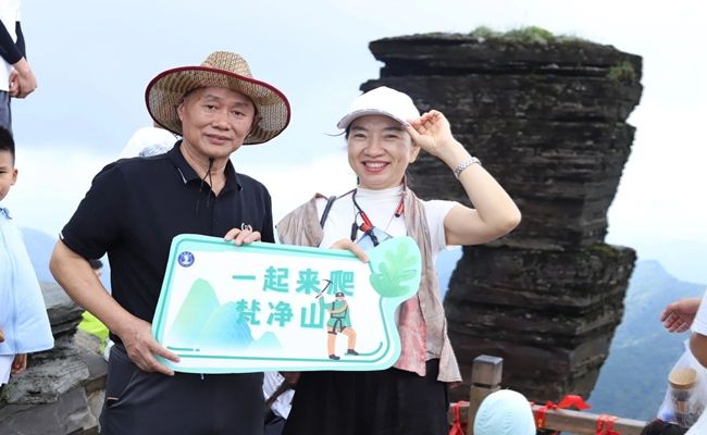 梵净山被誉为“贵州第一名山”“武陵第一峰”,是国家级自然保护区、国家5A级景区,其罕有地保存了亚热带的原生生态系统,繁衍着野生动植物7100多种,是黔金丝猴唯一的栖息地。7月9日上午,实践队一行人来到梵净山,有条不紊地进行着宣传视频的拍摄,并同步开启景区直播推介。