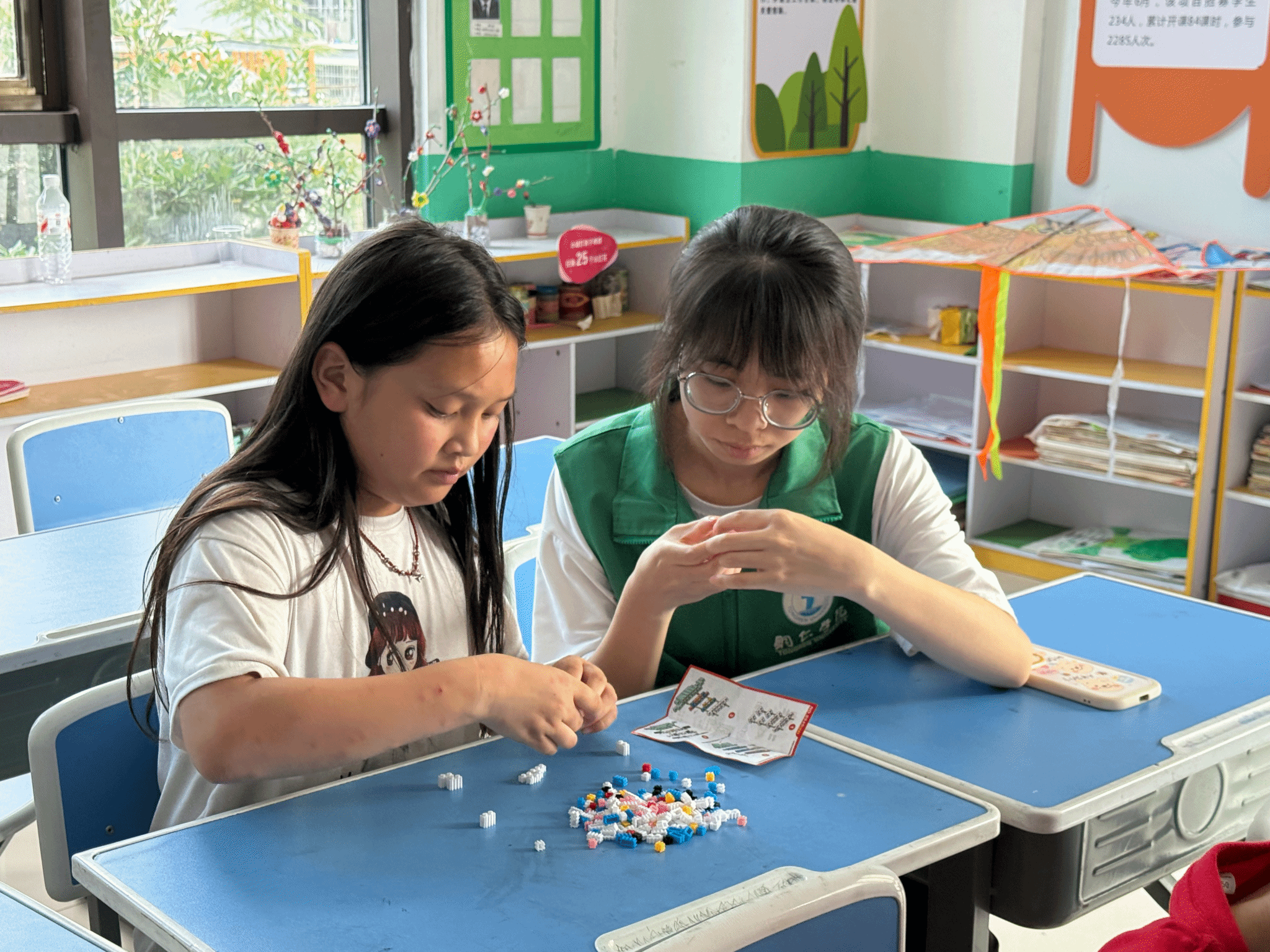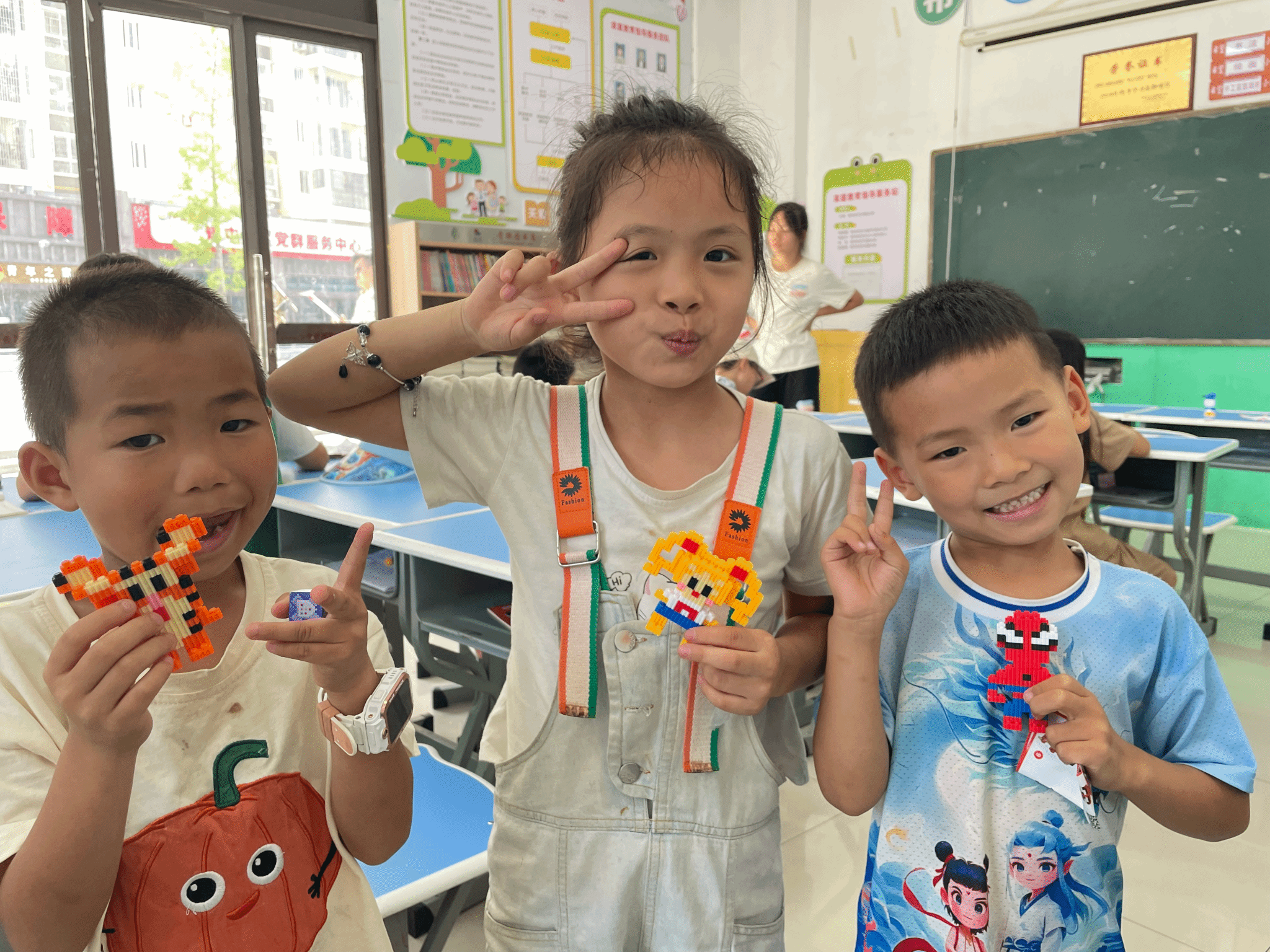 在手工课上,志愿者为每个小朋友准备了积木拼装,活动中小朋友独立完成积木还原过程。这些课程不仅丰富了孩子们的课余生活,更让他们发现了自身的兴趣与潜能。