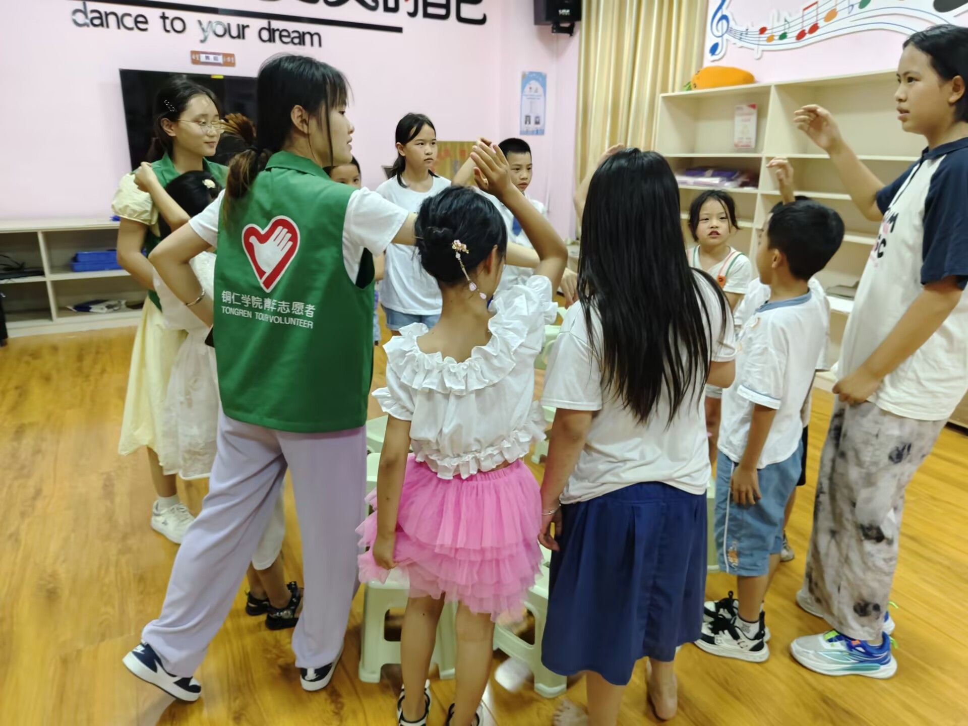 (志愿者与社区儿童合影)