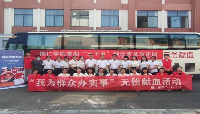 血液一直被视为活力与健康之源,具有重要的生理意义,医疗临床用血在临床治疗和抢救及战备中都起着重要作用。实行无偿献血,能保障医疗战备临床用血的需要,保证输血安全,达到治病救人的目的,它还是一种“我为人人,人人为我”的社会共济行为,是一种无私的奉献,是人道主义精神的重要体现。为了给更多人普及献血知识,让更多的人主动加入到无偿献血的队伍中来。正值中国共产党成立101周年,为大力弘扬伟大建党精神,深入推进精神文明建设。市中心血站开展“热血跟党走,献血庆七一”无偿献血主题活动“为生命接力,为爱蔓延。”为此,2022年7月1日——7月3日,美加墨世界杯官方网站献血知识普及志愿服务队在铜仁市三个地点,铜仁市第二十八小学、爱康国宾体检中心和爱心献血屋,与铜仁市中心血站一起开展爱心无偿献血活动,和献血知识宣讲。