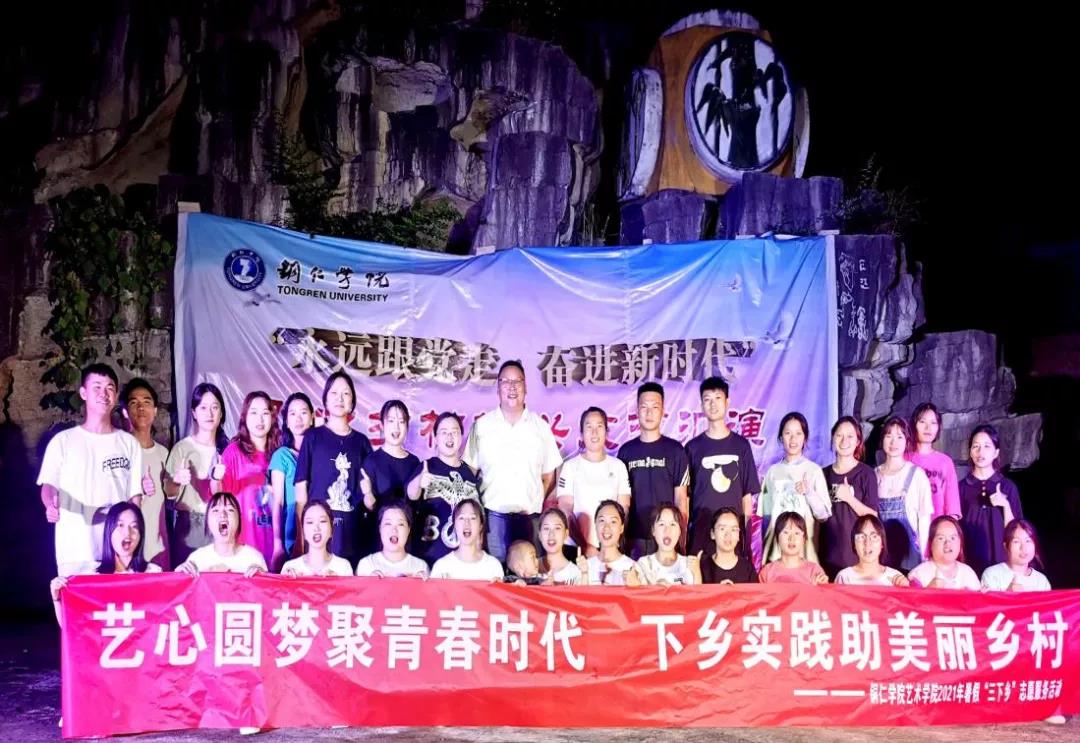 根据上级团组织安排,结合学校党史学习教育“百名教授博士助力乡村振兴下基层”行动要求,积极引导全校青年学子投身乡村振兴战略中去,勇做担当民族复兴大任的时代新人。7月20日至21日,在艺术学院王瑰博士的指导下,徐秋逸、杨璐两位老师的带领下,近三十名实践队员奔赴石阡县石固乡王家沟村、石场村开展了暑期“三下乡”暨“永远跟党走·奋进新时代”助力乡村振兴文艺汇演及乡村“美颜”墙画绘制实践活动。