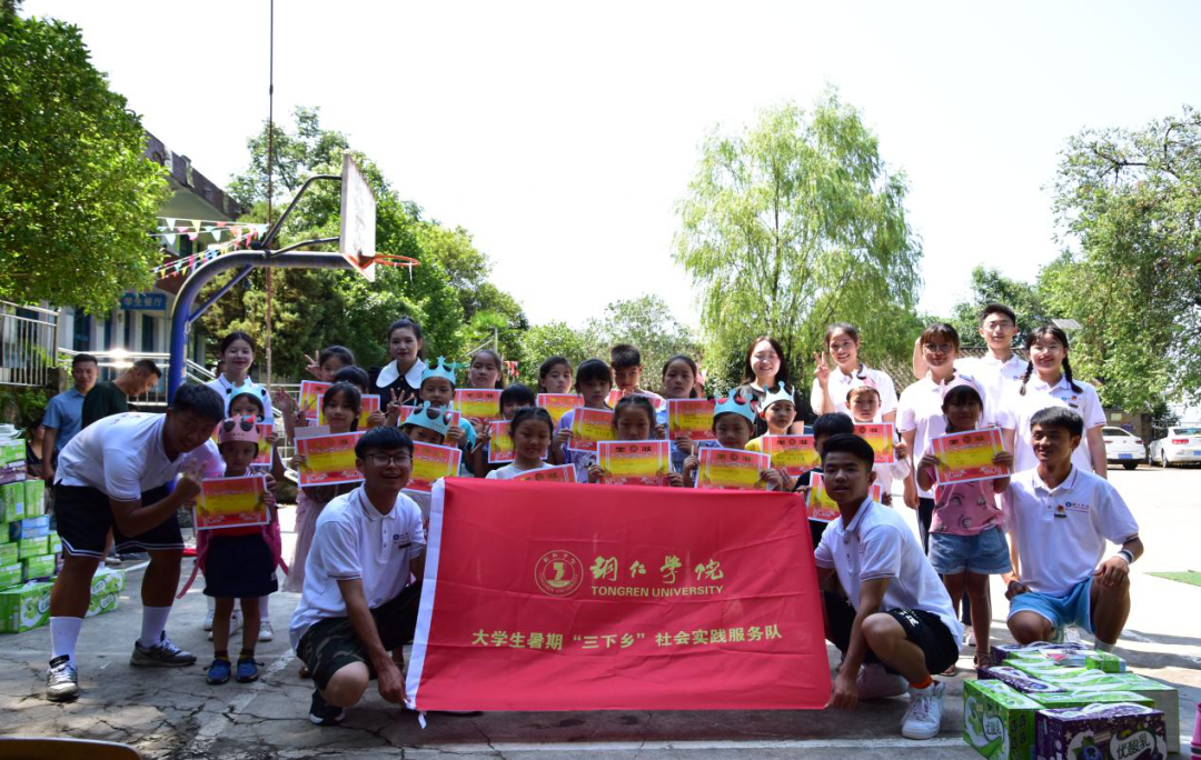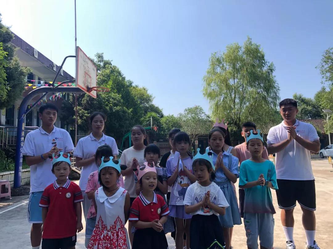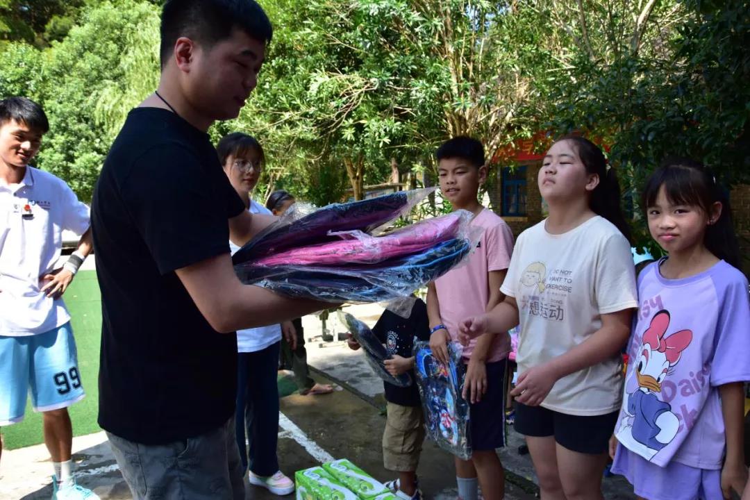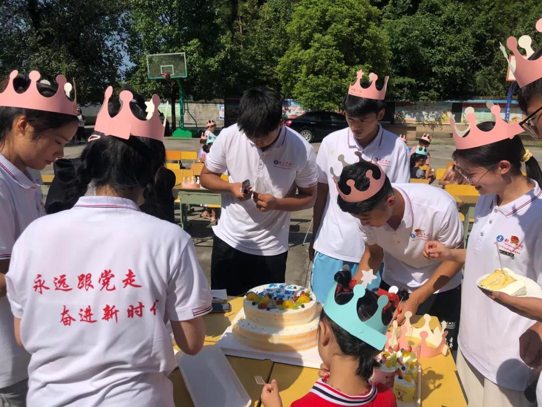 (凉湾村委书记杨江波发表讲话) (指导老师钟琦老师发表讲话) 随后带队指导老师钟琦老师、凉湾村委会书记杨江波发表讲话,在讲话中,他们都着重强调了关爱留守儿童专项计划的重要性以及在生活中我们应怎样尽自己最大努力去关爱留守儿童的相关问题。 (分蛋糕) 随后在唱歌、朗诵表演结束后,志愿者们提前准备了生日蛋糕给小朋友们过集体生日。在合唱生日祝福歌、分蛋糕过程中,小朋友们显得格外兴奋,一个个都露出了天真高兴的笑容。紧接着,爱心人士在活动最后开展了捐赠活动,共捐赠牛奶55箱,书包、文具盒若干,小朋友们在得到礼物后,纷纷对叔叔阿姨的关爱和帮助表示感谢,并希望自己将来也能够成为对社会有用的人。最后,志愿者们根据这几天小朋友们的表现,分别给每个小朋友颁发了奖状和礼品,并对他们的未来寄予厚望。 (合影) 通过这短短十天的社会实践活动,志愿者们更加认识到了十九大报告提出的乡村振兴战略的重要性。虽然在这十天里有累、有苦,但是志愿者们却感到无比充实和幸福。志愿者们纷纷表示在今后的生活中也将会继续弘扬"奉献、友爱、互助、进步"的志愿服务精神,继续关爱、关注留守儿童。编辑丨石佳雅(美加墨世界杯官方网站青媒工作室)终审丨周倩(美加墨世界杯官方网站团委)