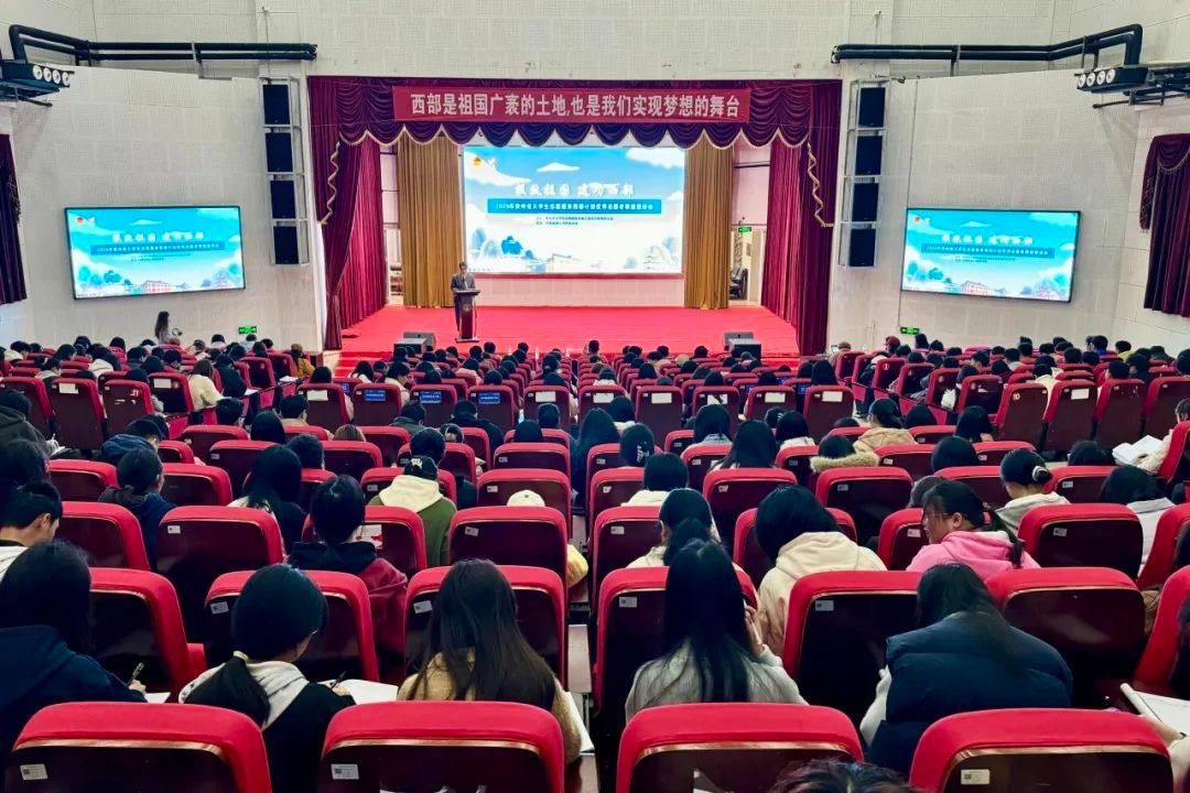 3月22日,2025年贵州省西部计划优秀志愿者事迹宣讲会在世界杯官网人文生态馆举行,宣讲会由校团委副书记田淼主持。本次活动由贵州省大学生志愿服务西部计划项目管理办公室主办,美加墨世界杯官方网站团委承办。毕业生指导老师、毕业生代表、优秀志愿者代表以及全校三百余名学生参加本次活动。