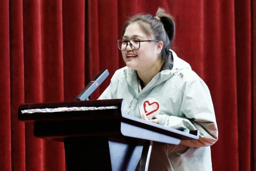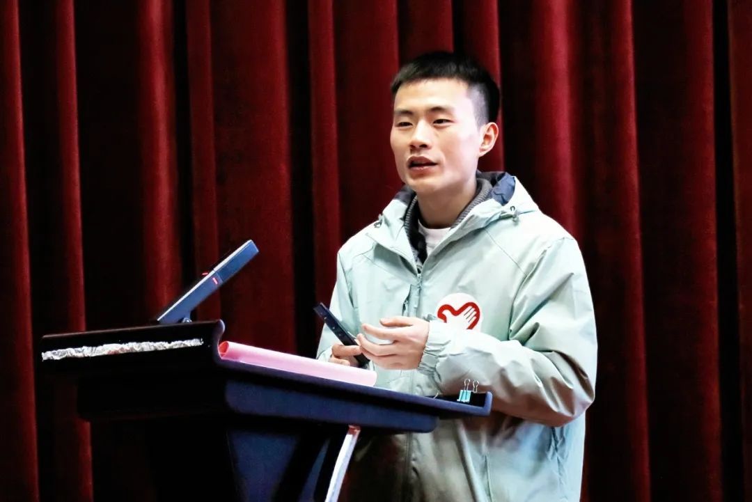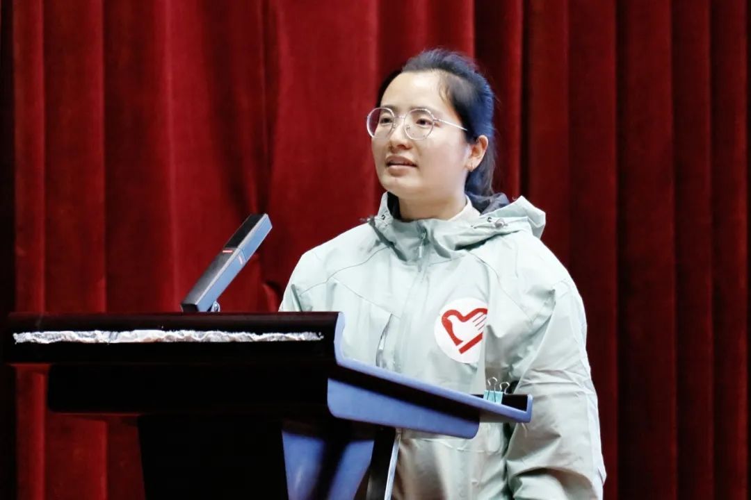 大会伊始,现场播放了贵州省西部计划实施20周年宣传片,通过影像展示了西部计划志愿者扎根基层、服务乡村振兴的奋斗历程。宣传片播放结束后,田淼结合西部计划项目向在场同学介绍了大学生西部计划的发展历程和宗旨。随后,刘盛涛、赵丽荣、夏忆三位优秀志愿者代表依次上台发言,分享了自己以青春赴西部基层,在不同岗位上发光发热,用行动展现青年使命担当,书写出动人的奉献篇章的事迹。