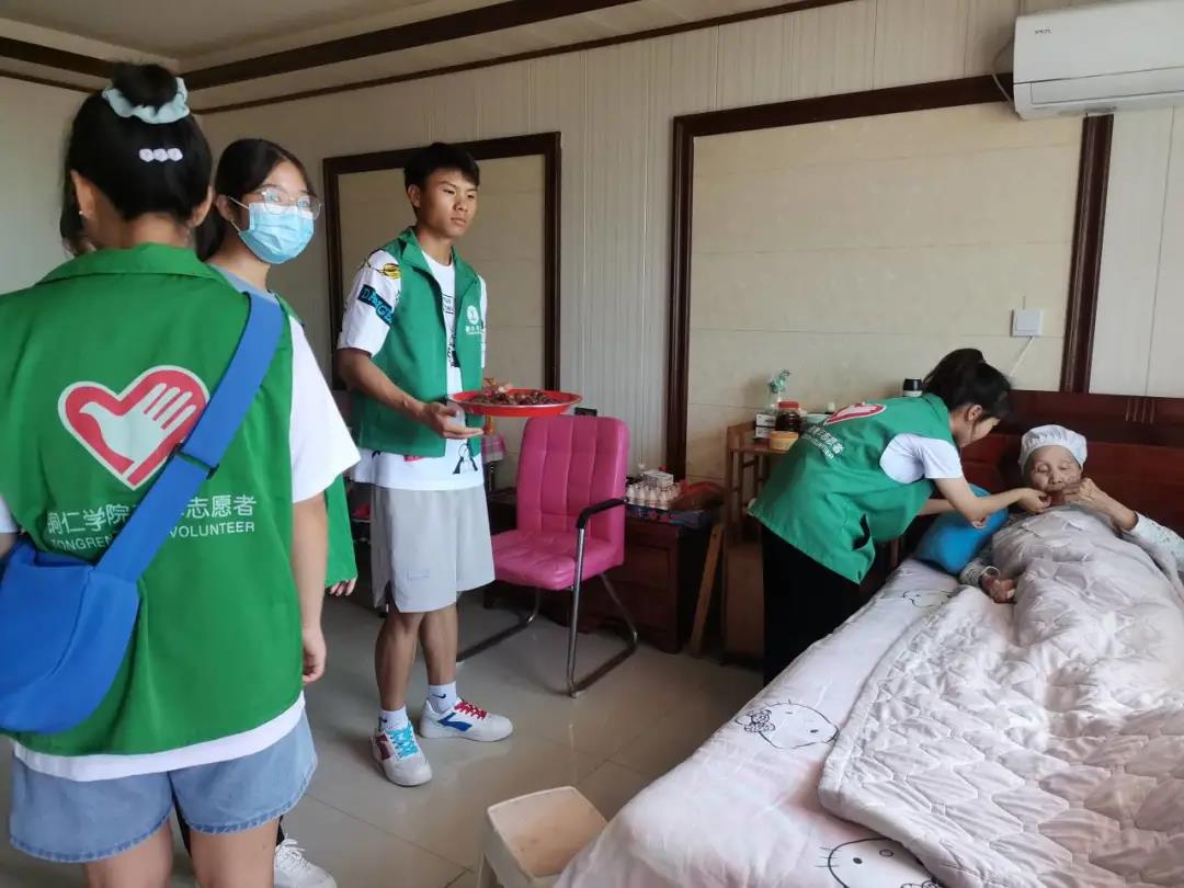 同学们自由选择志愿服务方式,有的到各个楼层的房间,陪老人们拉拉家常、讲讲笑话、讲讲养生小知识,给老人们带去欢笑和快乐;有的帮助老人整理内务,打扫卫生,捶捶背,使老人感到舒适放松;有的到户外和老人聊天,听老人讲讲过去,讨论一下现在,不仅为老人带去了欢乐,也使自己受到了教育。