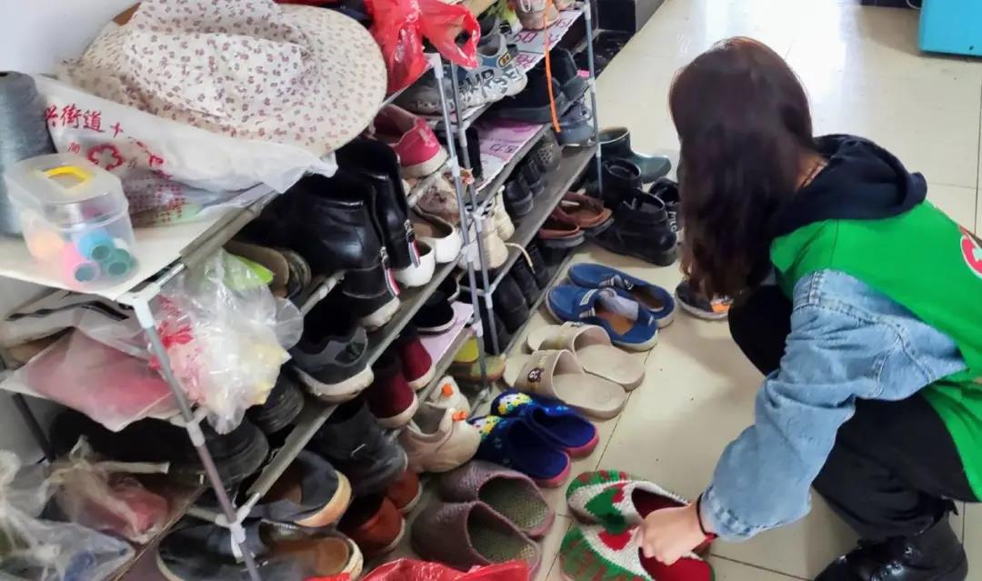 (志愿者积极整理鞋柜)