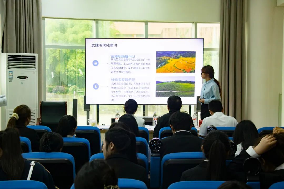 为引导和鼓励世界杯官网大学生广泛参与学术科技实践,不断增强对民生民情的关注和了解,5月7日,世界杯官网第十届“挑战杯”大学生课外学术科技作品竞赛校级决赛在梵净山人文生态馆举行。教务处副处长冉耀宗、铜仁职业技术学院评审专家张荣芳、材料与化学工程学院教授杜士杰、哲学与历史文化学院副教授刘剑、文学与传媒学院团总支书记杨梦阳、校团委副书记(挂职)周倩担任本次比赛评委。