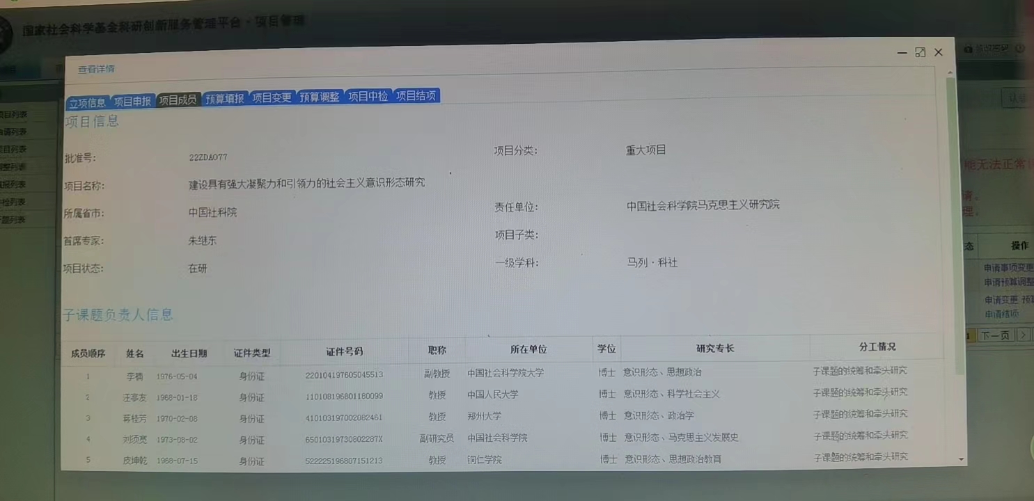 子课题立项信息