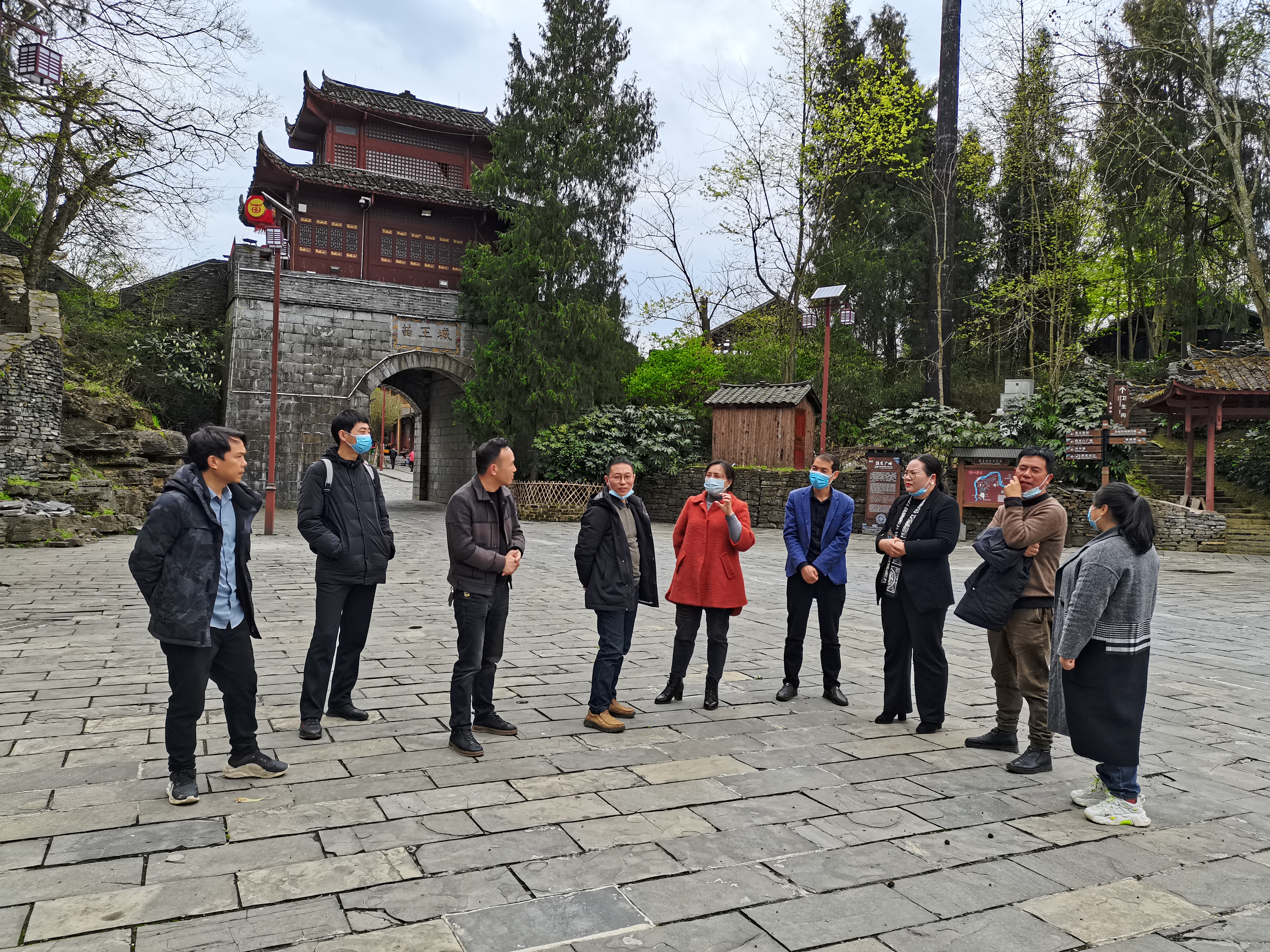 为深入挖掘苗族历史文化内涵,更好地开发利用和宣传苗族历史文化,推动苗王城景区高质量发展,助力乡村振兴。3月25日,受松桃苗王城文化旅游投资开发有限公司邀请,我院教师李锦伟、龙智先、龙开义、谢峰、姚雪洁、刘剑,中心研究员梁正海、田自立、黎帅等人赴松桃县苗王城开展民族文化调研并挂牌建立民族学田野调查基地。原铜仁市档案局(市地方志编纂委员会办公室、市档案馆)副局长(副主任、副馆长)滕继承,苗王城景区总经理吴青松,副总经理吴明昕、吴明富、贺闲,景区运营部部长吴爱枚等人陪同调研并召开座谈会。
