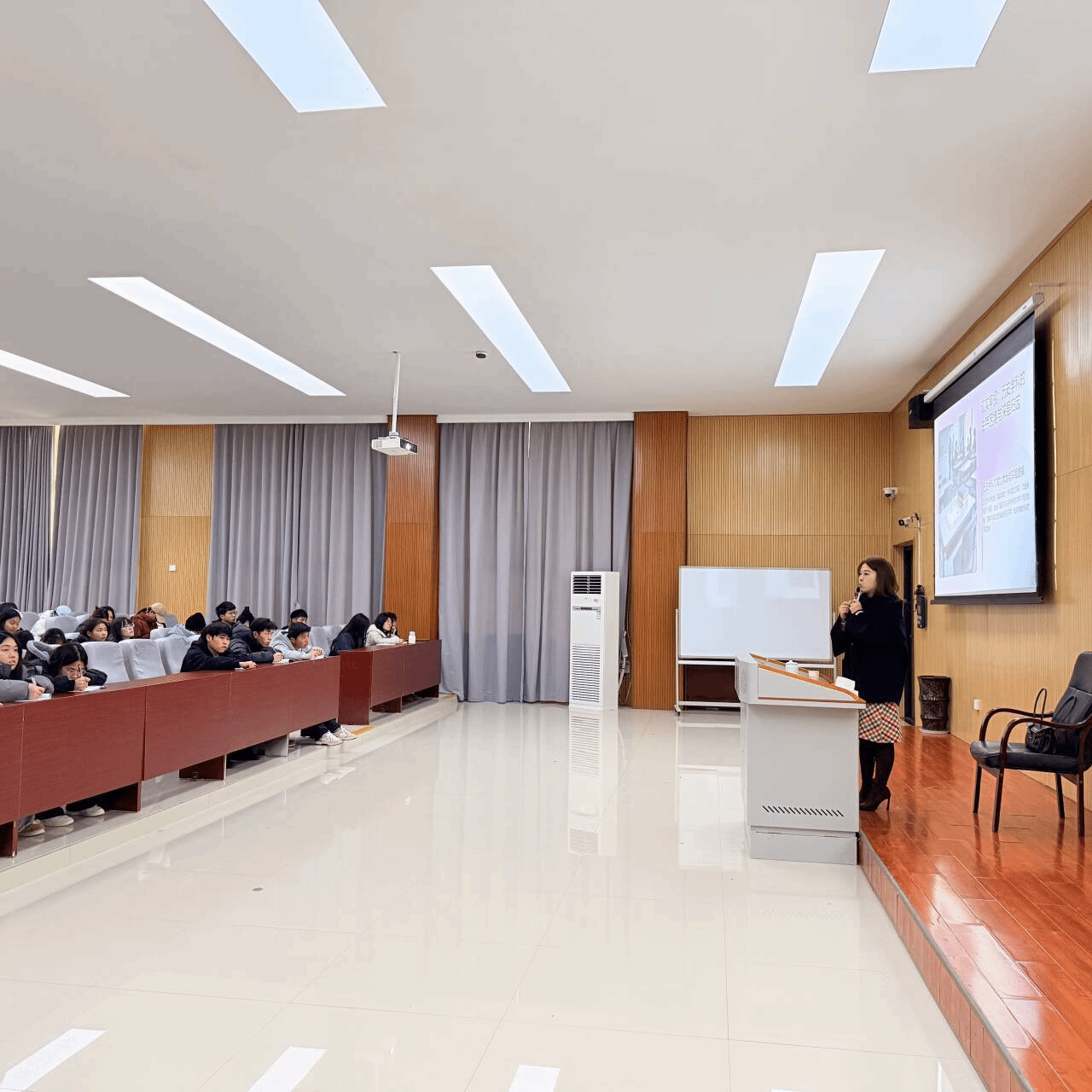 为对接中学历史教学实际需求,帮助师范生明确职业能力准备方向,2025年11月18日上午,历史学专业在博思楼105举办“历史教学现状与师范生能力准备清单”专题讲座。讲座由铜仁市教科所历史教研员陈甜老师主讲,24级、25级历史专业师范生参加。