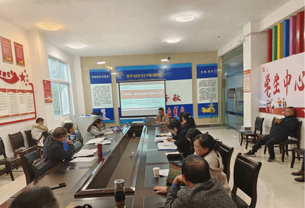 10月13日下午,我院教工党支部组织全体党员在音乐楼一楼党员活动室开展主题党日活动,本次活动主题“铭记抗战历史 增进五个认同”,由教工支部委员、副院长李锦伟围绕主题作专题宣讲,教工支部书记史泠歌主持。
