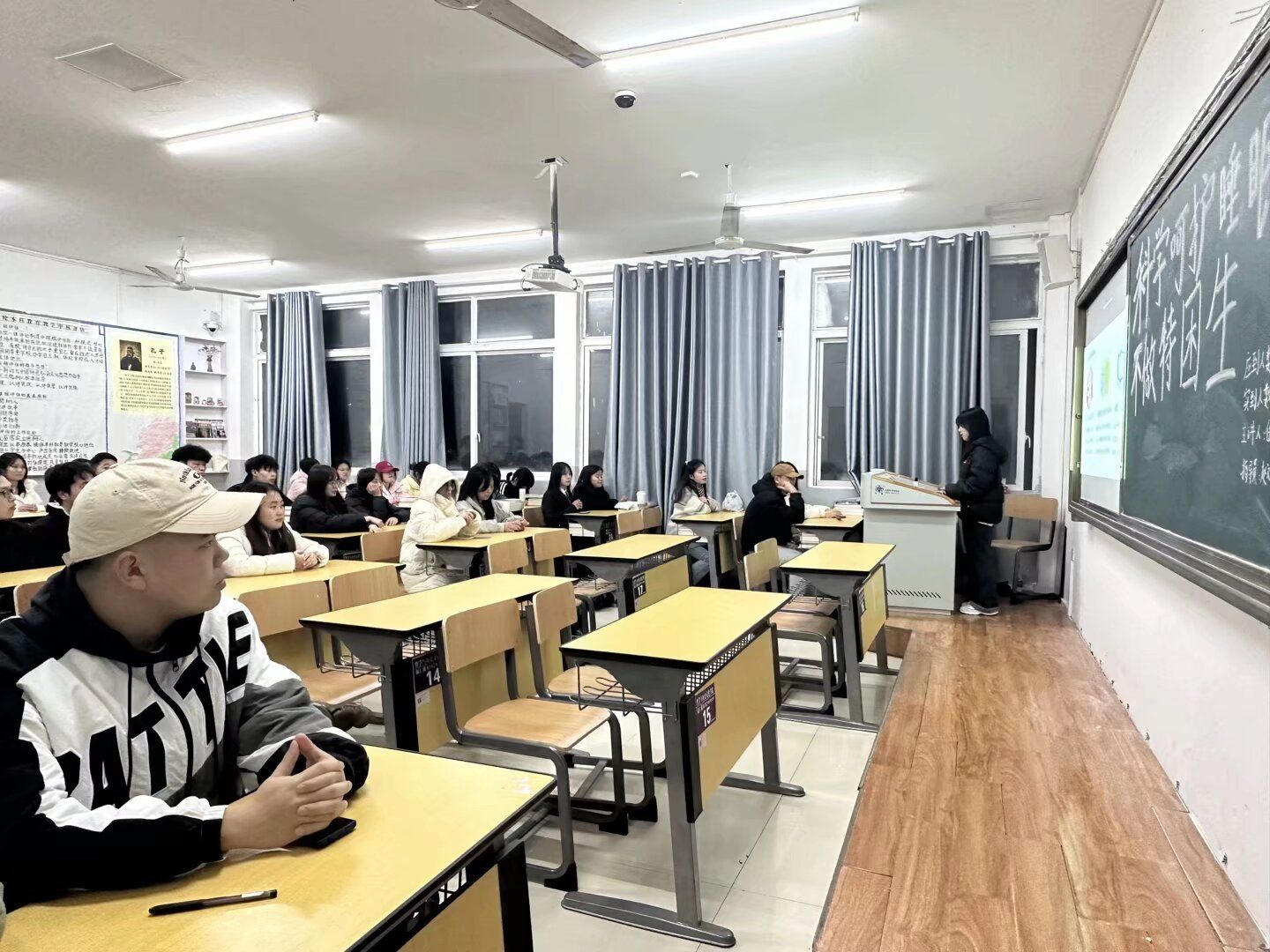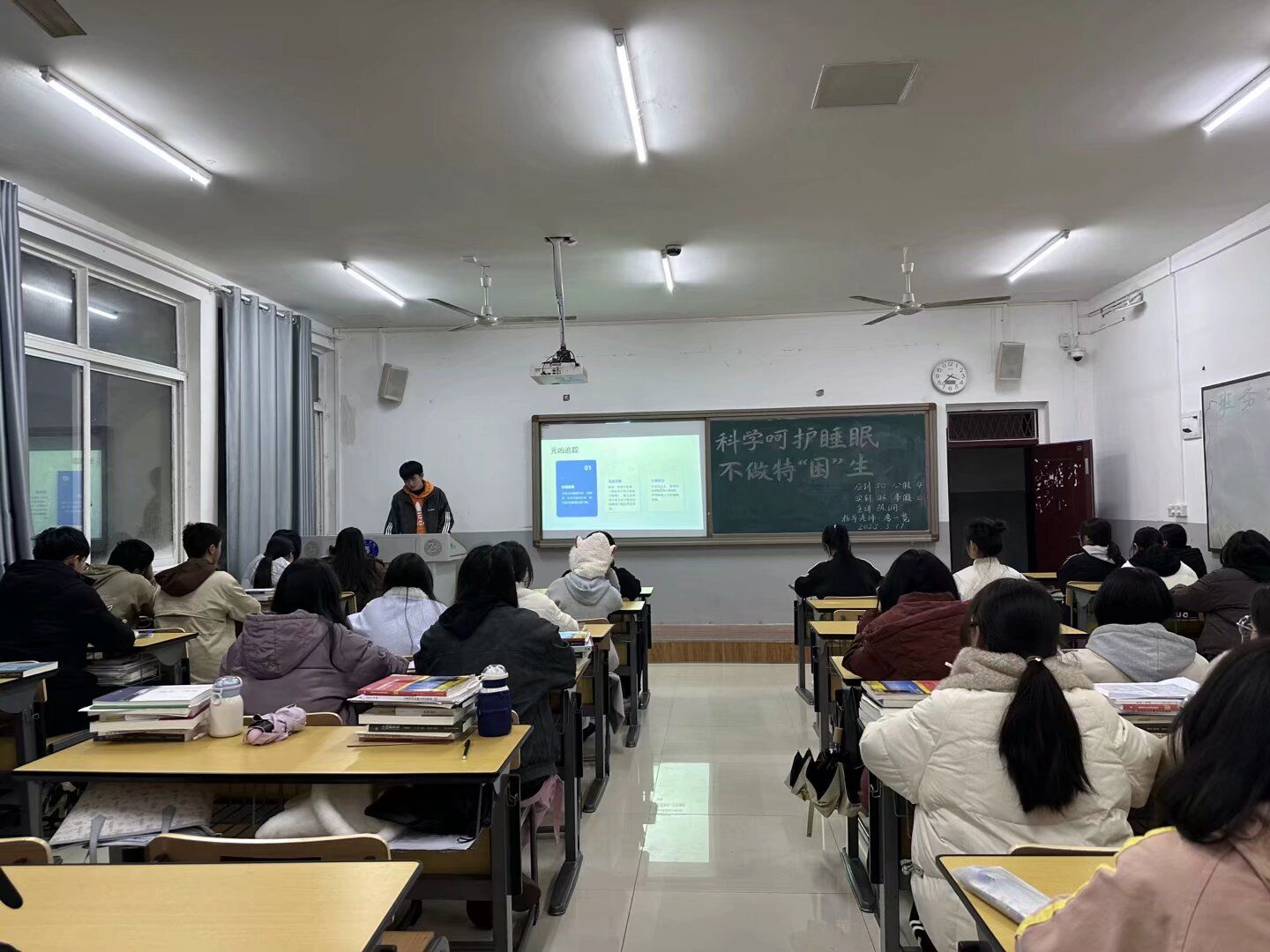 3月17日晚,我院各班于依仁楼A组织召开了“科学呵护睡眠,不做特‘困’生”主题班会。