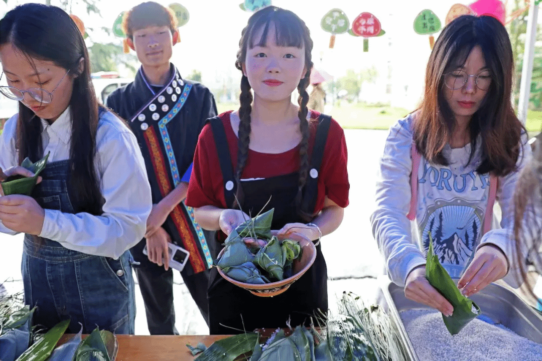 “这样才能包出好看的形状。”“这样才能把绳子扎得更紧,煮的时候不容易露馅。”在包粽子体验现场,经验丰富的食堂阿姨边包边向同学们传授经验。来自铜仁几所高校的外国留学生,也纷纷加入到活动中,与中国学生一起,学习包粽子,体验端午节文化,感受中华优秀传统文化的魅力。大家看着一个个包好的粽子,喜笑颜开,欢声笑语不断。每一颗粽子,都承载师生着对历史的敬畏、对文化的热爱和对未来的期待。