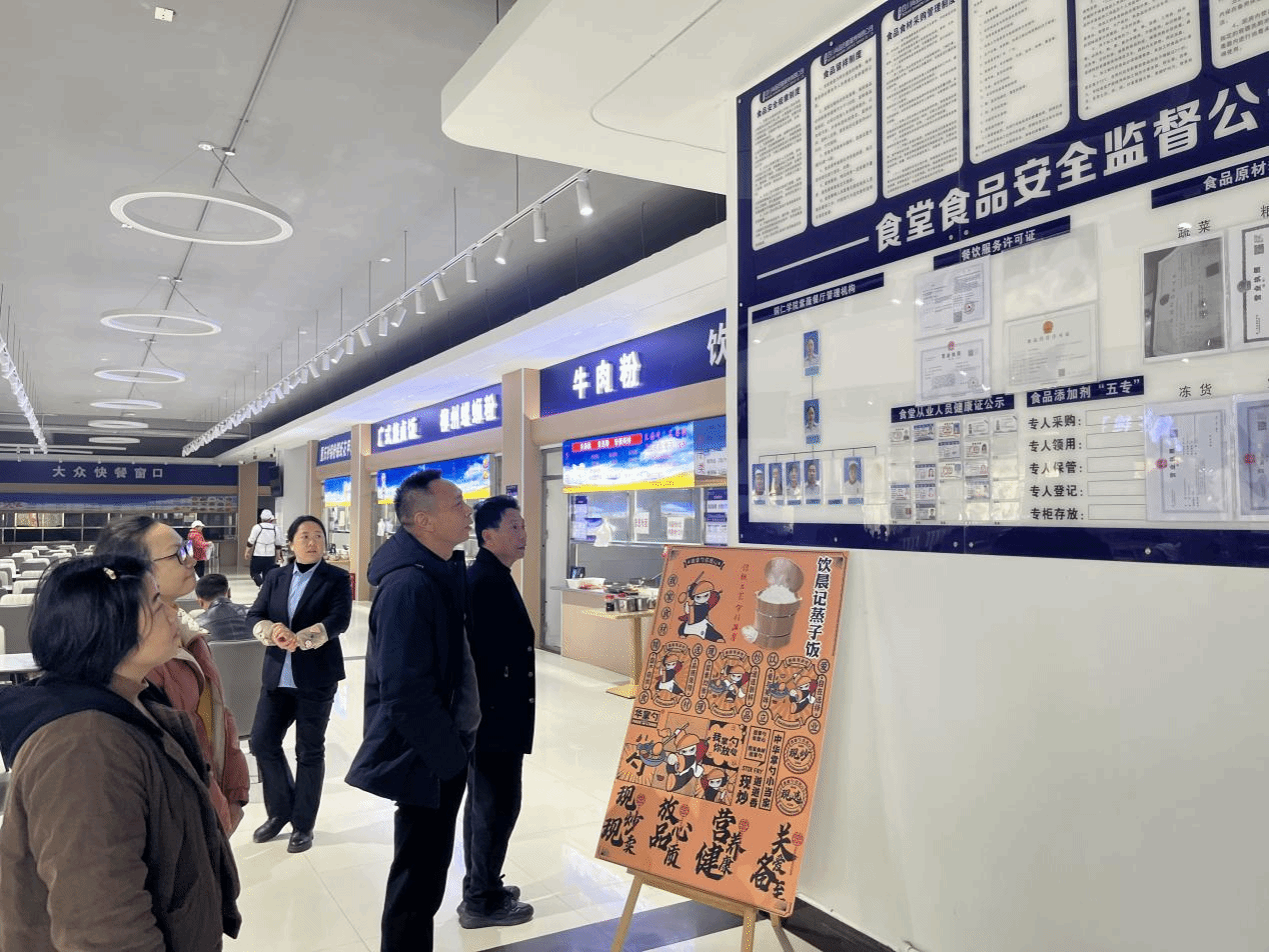 12月18日,铜仁市市场监管局副局长强自高等一行人到校督导世界杯官网落实食品安全(A级主体)责任情况,我处副处长肖庭华及膳食科、食堂相关人员陪同检查。先后查看了食品安全管理责任人员公示栏,观看了明厨亮灶视频,仔细询问了从业人员健康管理情况,重点对食堂布局流程、食材进货台账、储存方式、索票索证、库存场所、加工间、售卖间、三防设施、留样等情况进行检查。