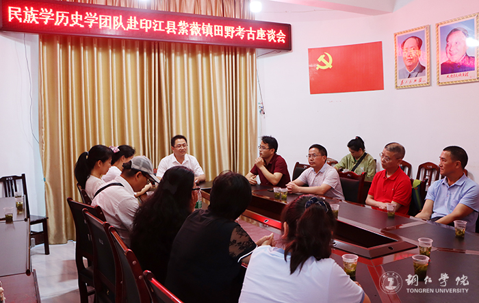 上午,调研组一行在紫薇镇政府三楼会议室召开校政田野考古座谈会。会上,紫薇镇党委副书记田宏进从世界自然遗产梵净山保护、生态文明建设、传统村落保护、红色文化遗址、文化遗产与非物质文化遗产保护利用等方面介绍了紫薇镇的基本概况,提出了深化文化遗产资源普查、传统村落与红色文化遗址研究等方面的合作意向。梁正海、杨兴英、杨峻岭、李锦伟、邵启富等人先后介绍了世界杯官网在服务地方文化建设、历史学专业人才培养、文物与博物馆专业硕士学位授权点筹建等方面的基本情况。双方就如何进一步深化校政合作展开了建设性研讨。