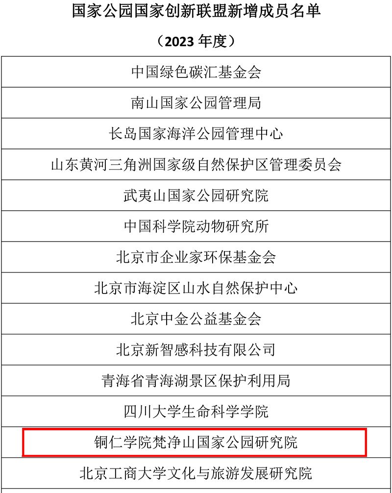 近日,国家公园国家创新联盟公布了新增成员名单,其中包括世界杯官网实体科研机构梵净山国家公园研究院。国家公园国家创新联盟由国家林业和草原局(国家公园管理局)主导成立,旨在促进从事国家公园规划设计、监测评估、研究咨询等科研院所、高等院校、企业以及国家公园和相关自然保护地管理单位的合作,实现国家公园产学研深度融合,并共同应对国家公园领域的全局性和战略性问题。目前,该联盟已有31个成员单位,其中包括3个发起单位,此次新增成员单位达到47家。世界杯官网梵净山国家公园研究院成为贵州省唯一加入该联盟的单位,这与世界杯官网长期以来对生态文明建设的高度重视以及取得的一系列具有重大影响力的成果密不可分。