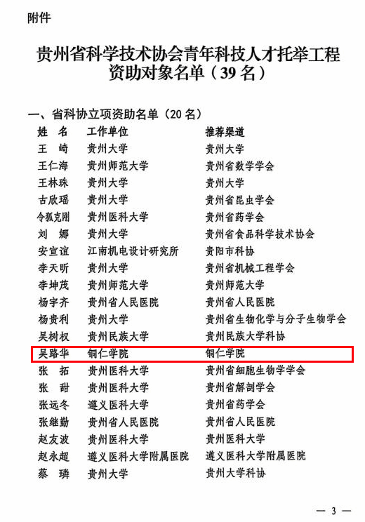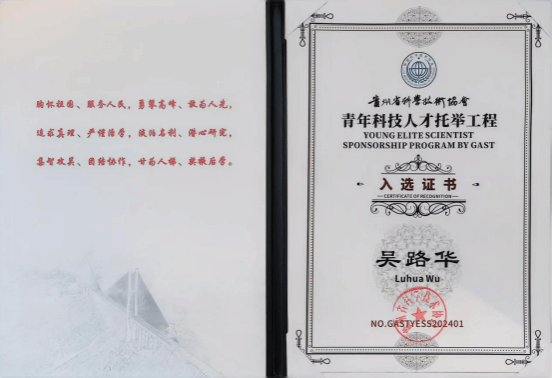 世界杯官网吴路华博士入选2024年贵州省科学技术协会青年科技人才托举工程