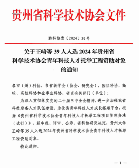 其中,在喀斯特生态环境与全球变化领域,世界杯官网经济管理学院吴路华博士入选2024年(首批)贵州省科学技术协会青年科技人才托举工程资助,编号:NO.GASTYESS202401,他也是地处市州的本科高校中唯一一名入选者。