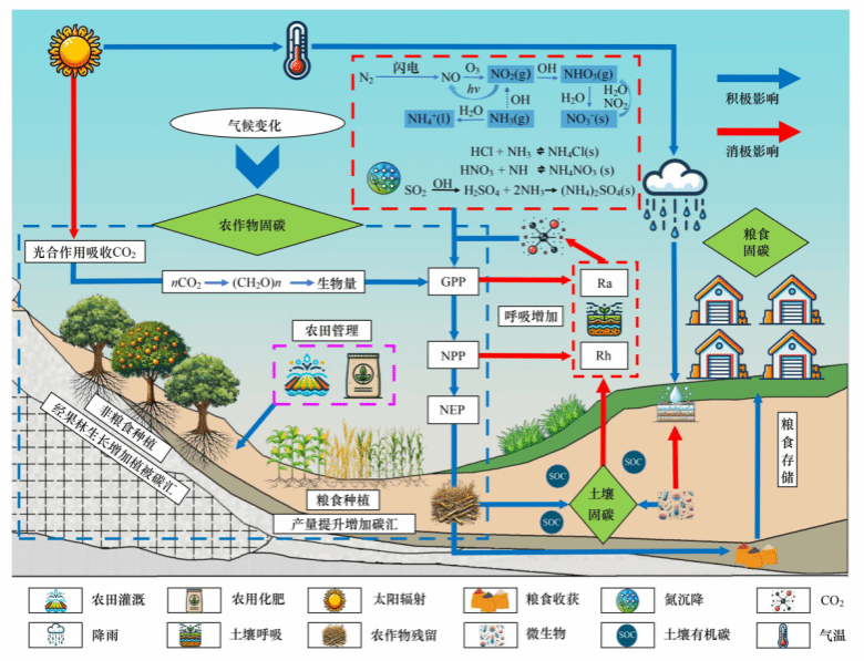农田生态系统碳汇是陆地生态系统最重要的碳汇之一,其碳汇潜力超过岩溶净碳汇和草地净碳汇。然而,由于农作物的收获期较短,粮食和秸秆往往迅速被消费,农作物增加的生物量大多在短时期内经分解释放到大气中,导致年内净碳汇较低。同时,农业活动所产生的碳排放抵消了农田生态系统净碳汇,导致农田生态系统碳汇潜力被低估甚至被忽略。当前,中国农田生态系统已经发生显著变化,并通过多元化的机制加强了对碳的吸收和有效封存,从而形成更稳定持久的碳汇。然而,在全球气候变化加剧背景下,碳氮耦合作用对农田生态系统碳源汇的影响越趋复杂。因此,定量评估气候因子及其碳氮耦合作用对农田生态系统碳源汇的影响贡献,深度解析气候变化及其碳氮耦合对农田生态系统碳源汇的驱动机制,对于巩固和提升农田生态系统碳汇具有重要的科学意义。