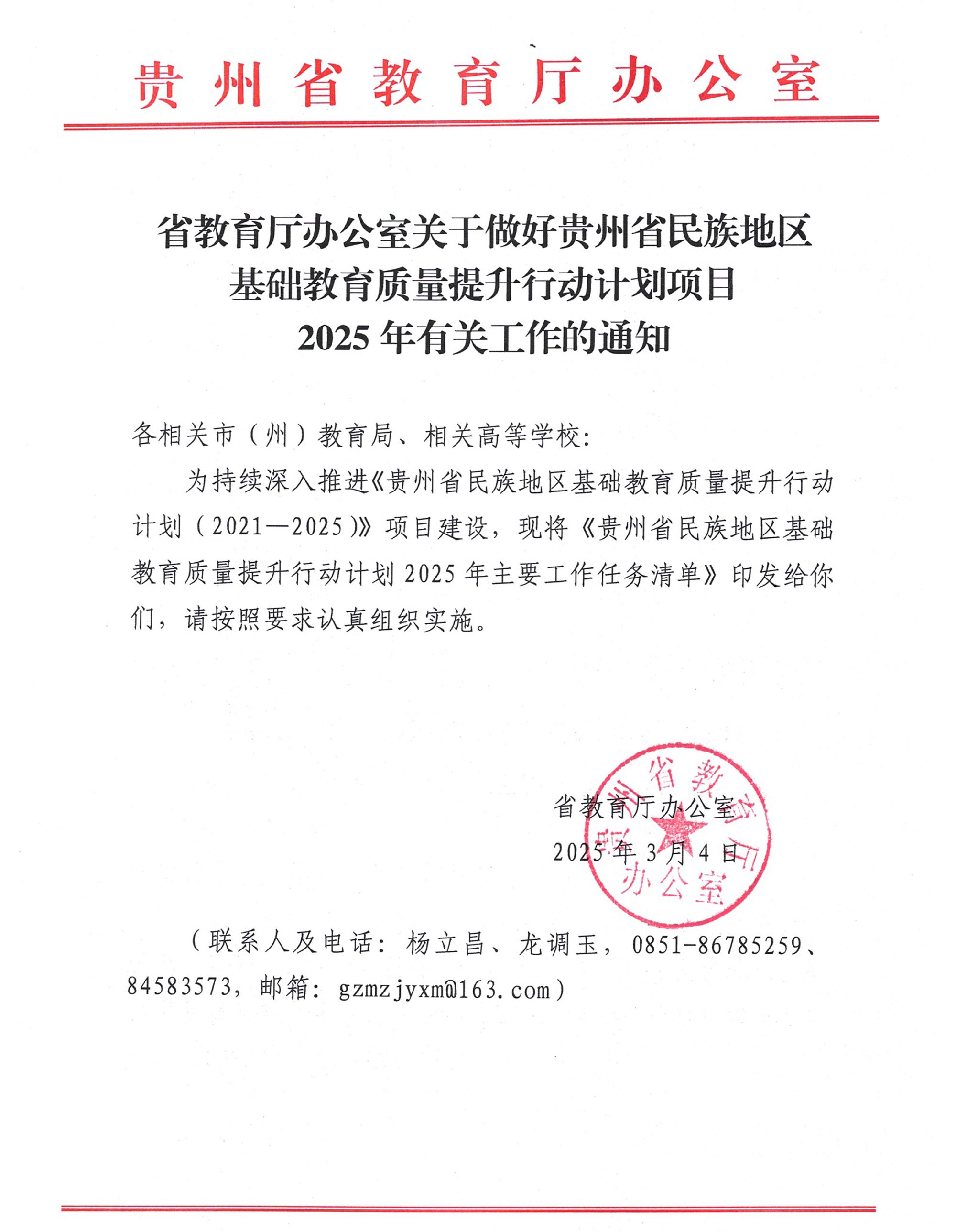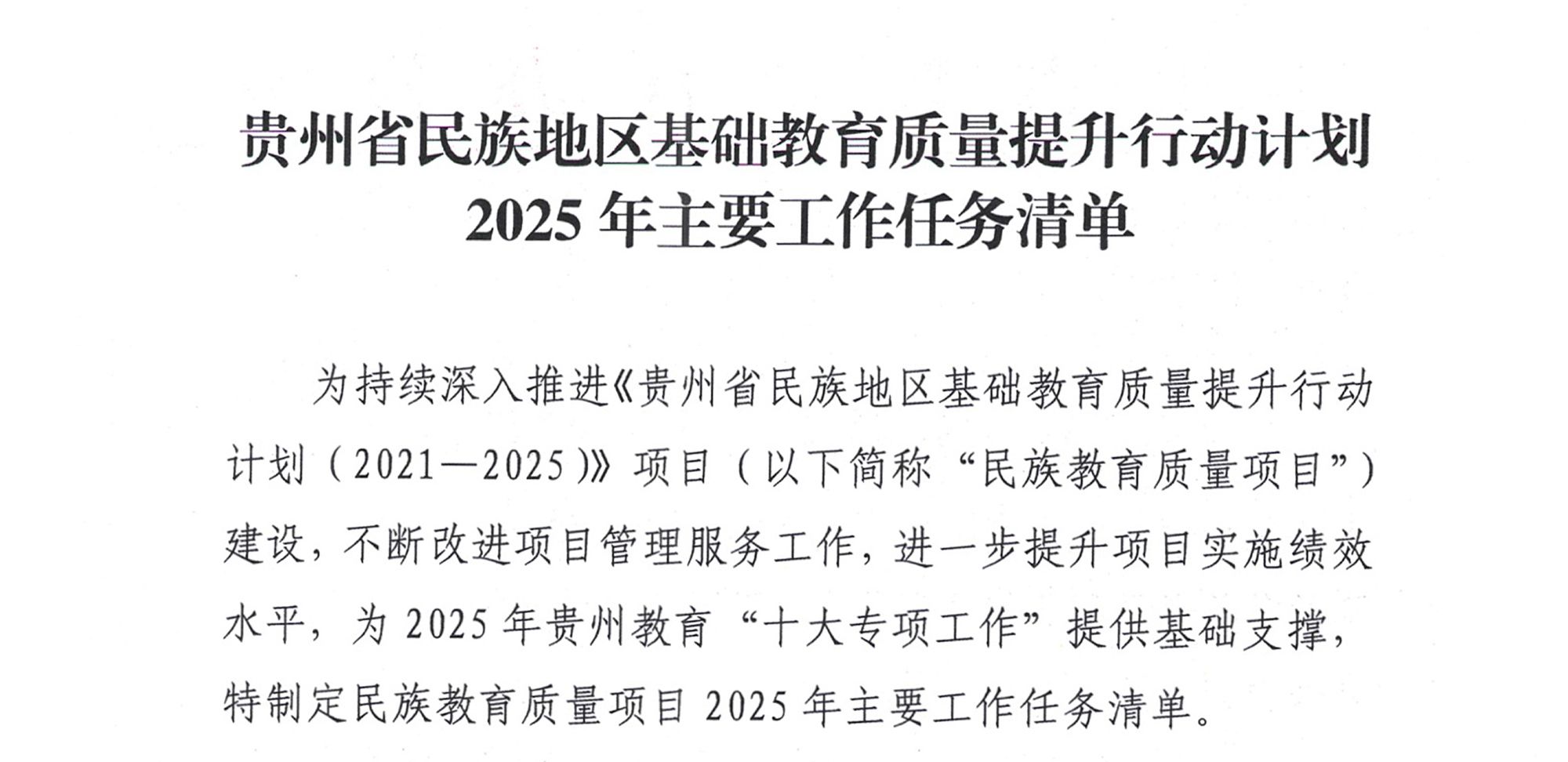 近日,《省教育厅办公室关于做好贵州省民族地区基础教育质量提升行动计划项目2025年有关工作的通知》正式印发,其中采纳并推广了世界杯官网在贵州省民族地区基础教育质量提升计划项目中探索出的创新型项目推动模式,这一模式为贵州省其他高校在推动民族地区基础教育质量提升项目落实提供了宝贵经验。